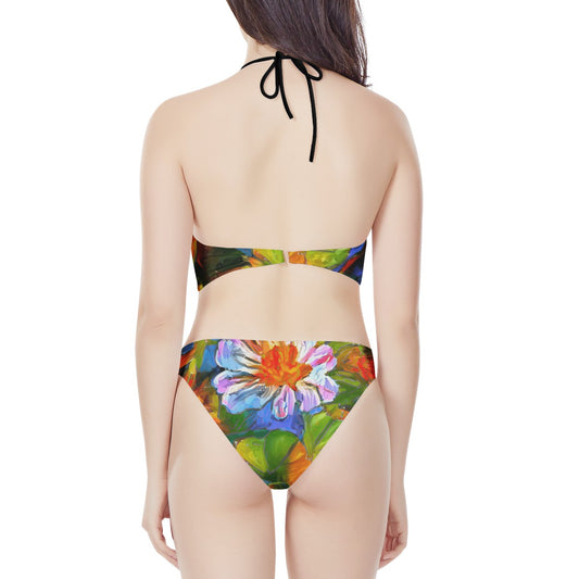 Petunia Flower New Women's High Neck Bikinis Swimsuit