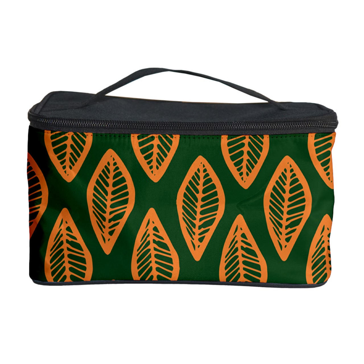 African | Ethnic | Mudcloth | #16 Green and Orange Cosmetic Storage Case