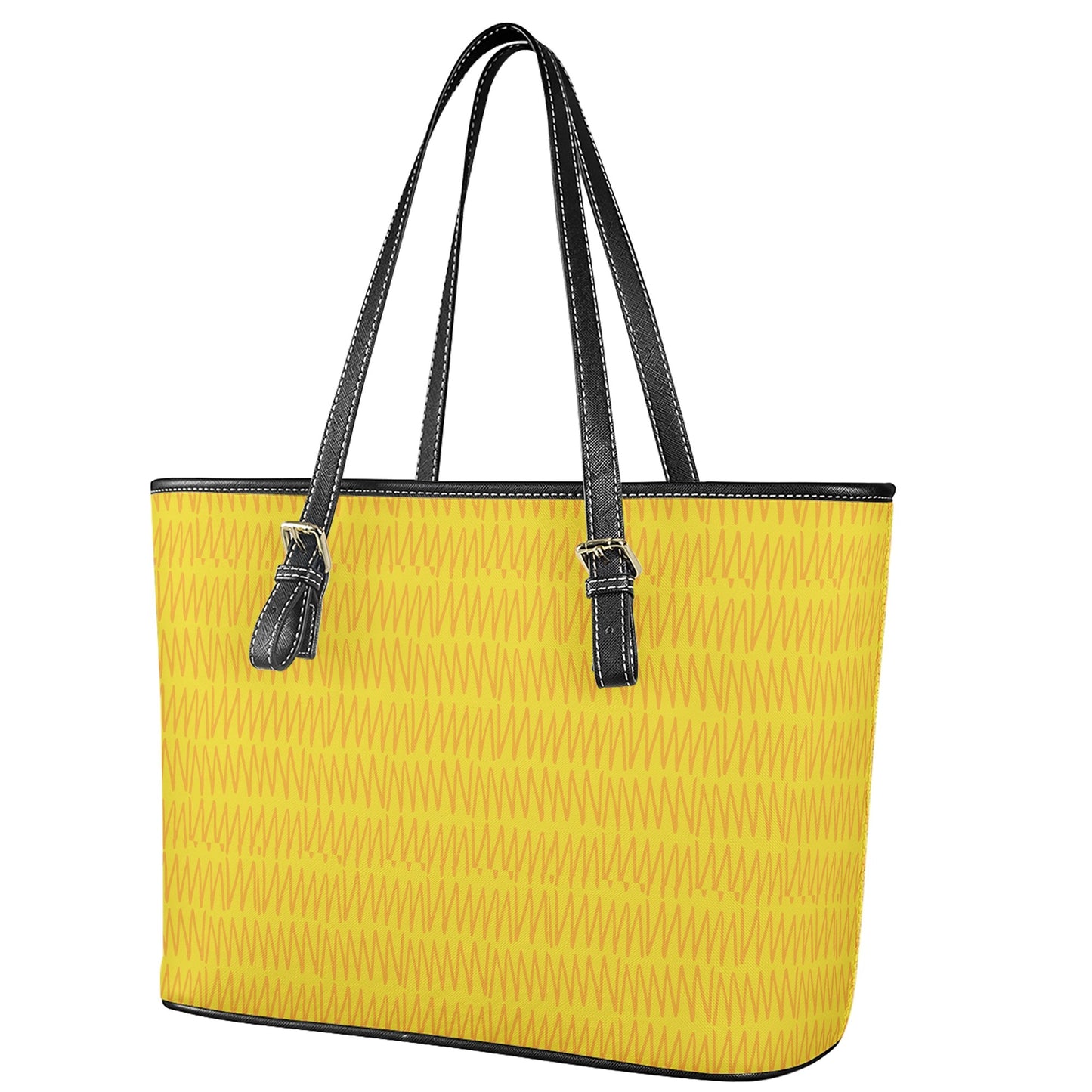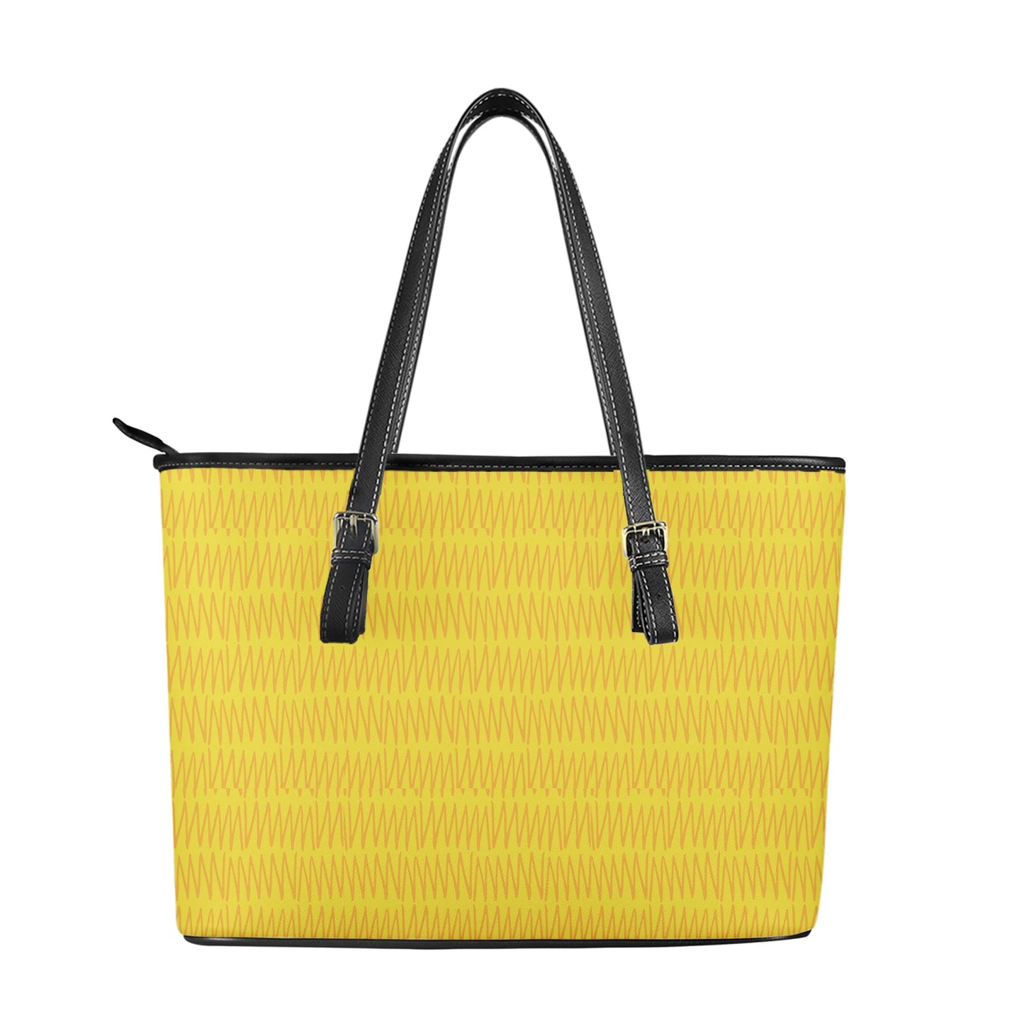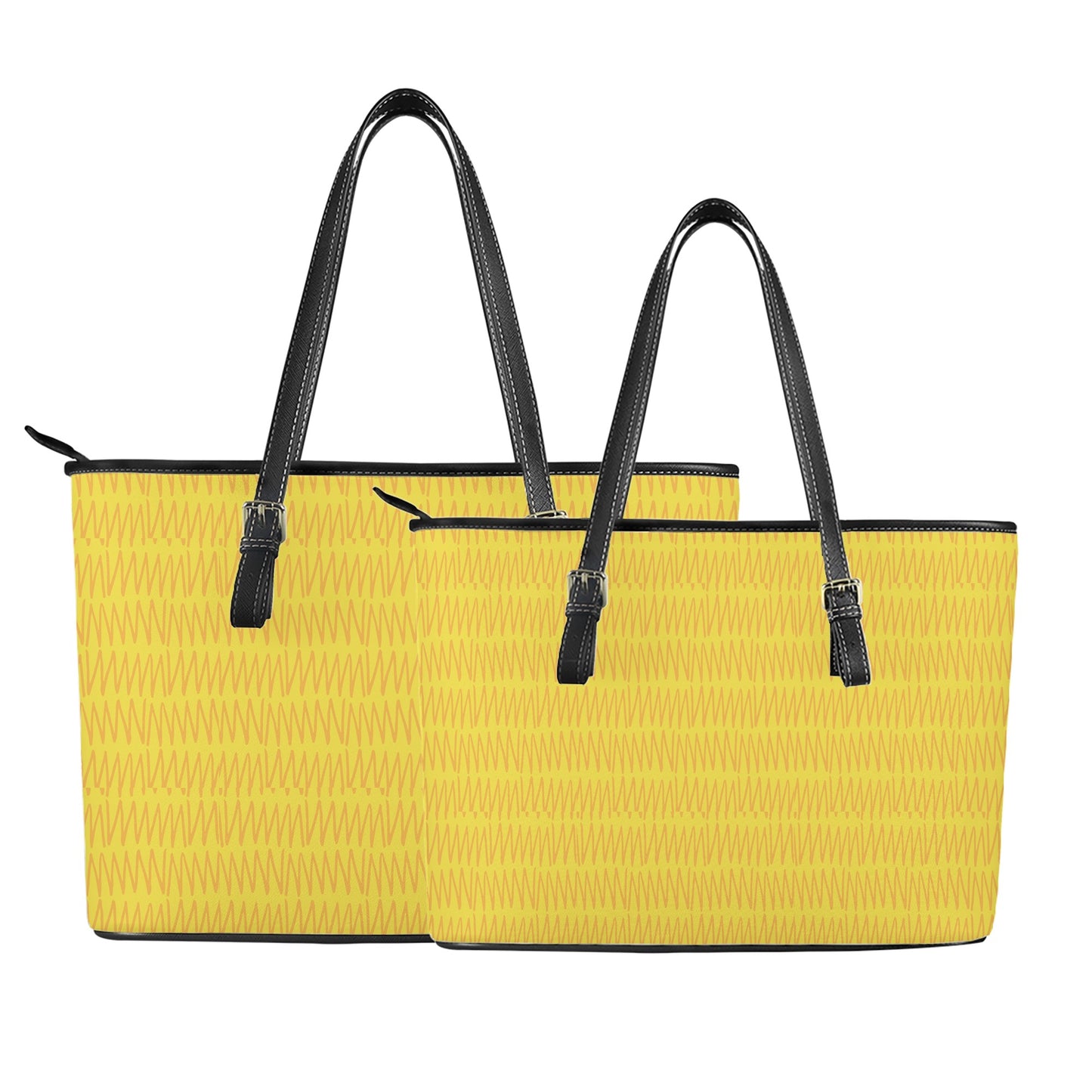 Yellow with Orange Zigzag Mudcloth Leather Tote Bags