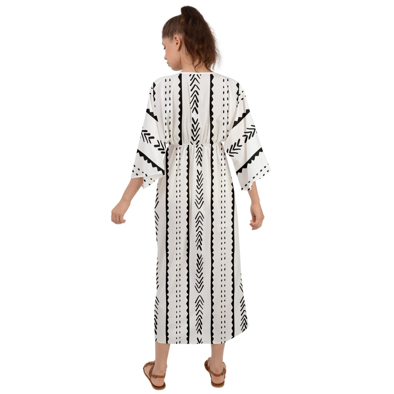 Look elegant and feel comfy in this billowy Grecian style maxi dress that comes with elasticated waistline and cross over v-neck style.