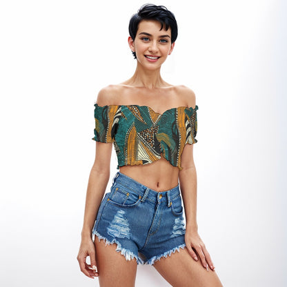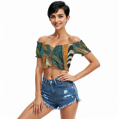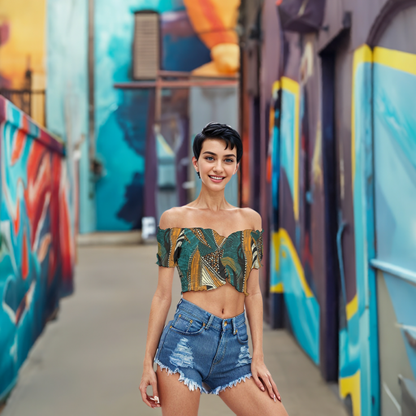 Luxtrini African Batik Dark Teal And Gold Women's Crop Top - Chic, Elegant, Handmade, Sustainable, Unique