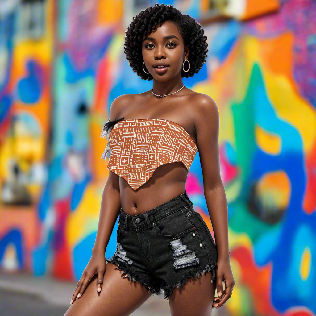 Mudcloth All-Over Print Women's Triangle Tube Top