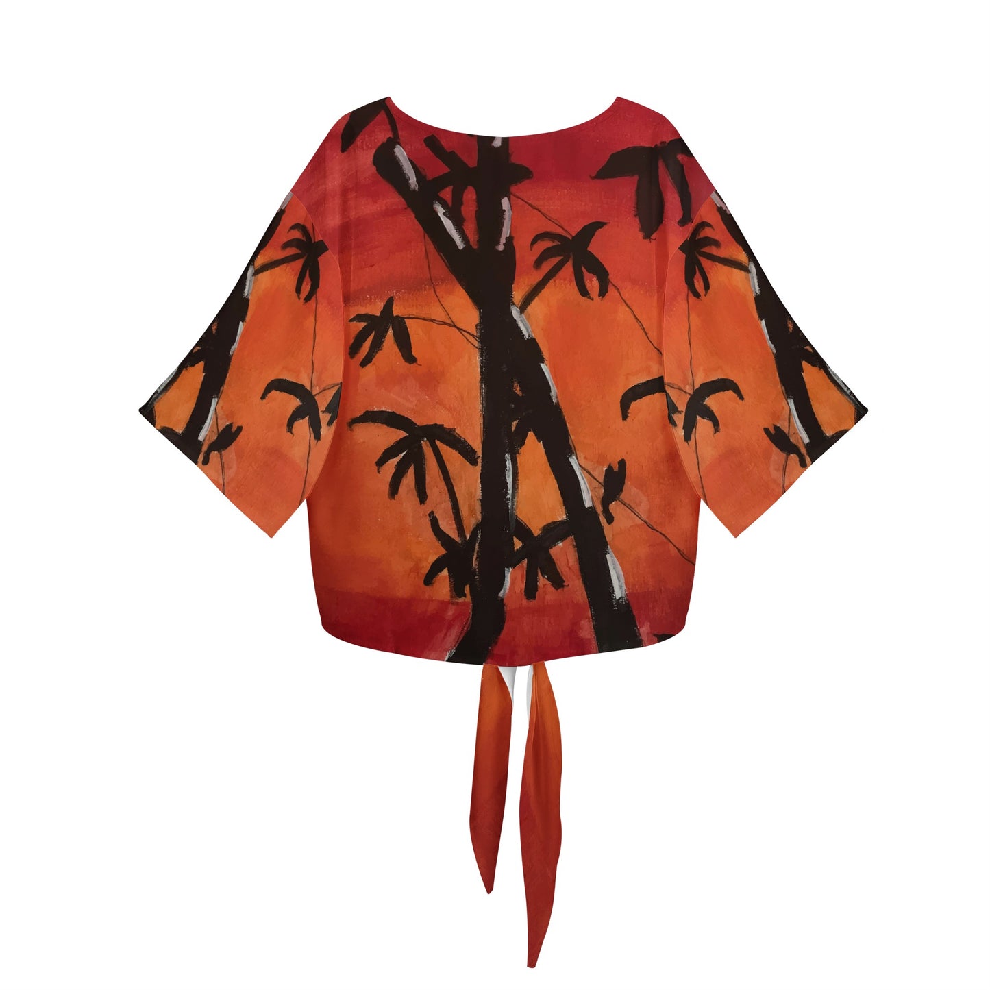 Bamboo at Sunset Women V-neck Streamers Blouse