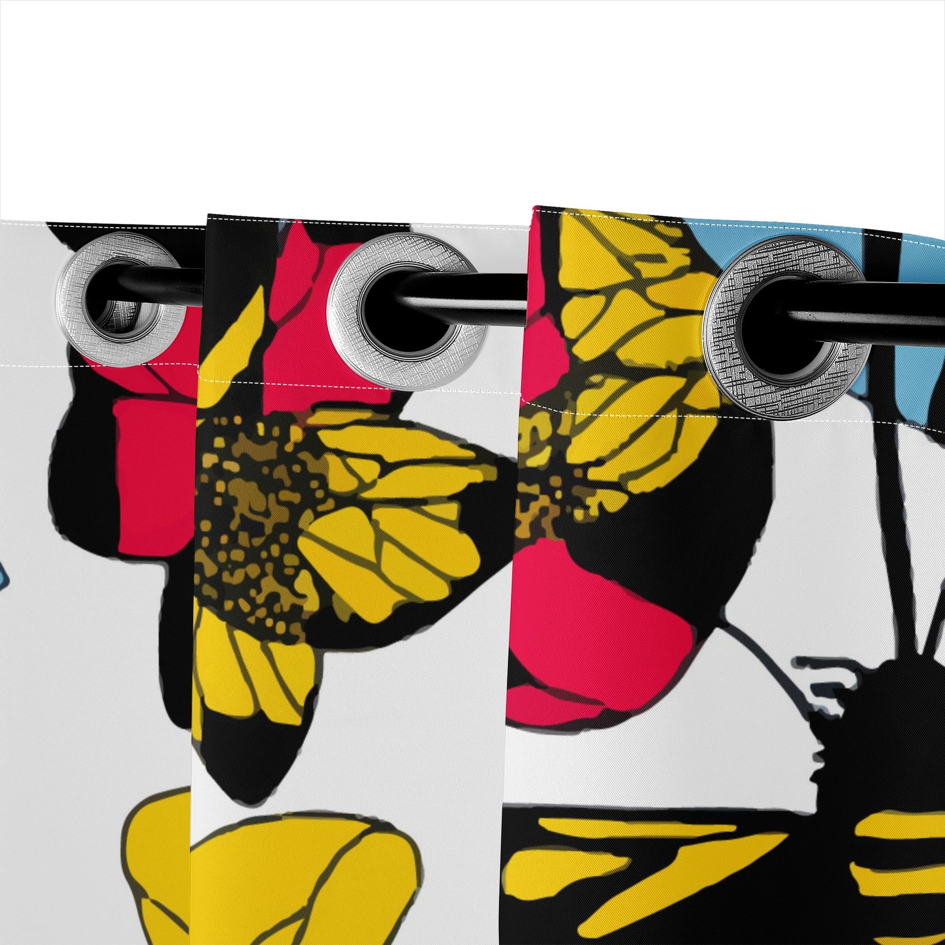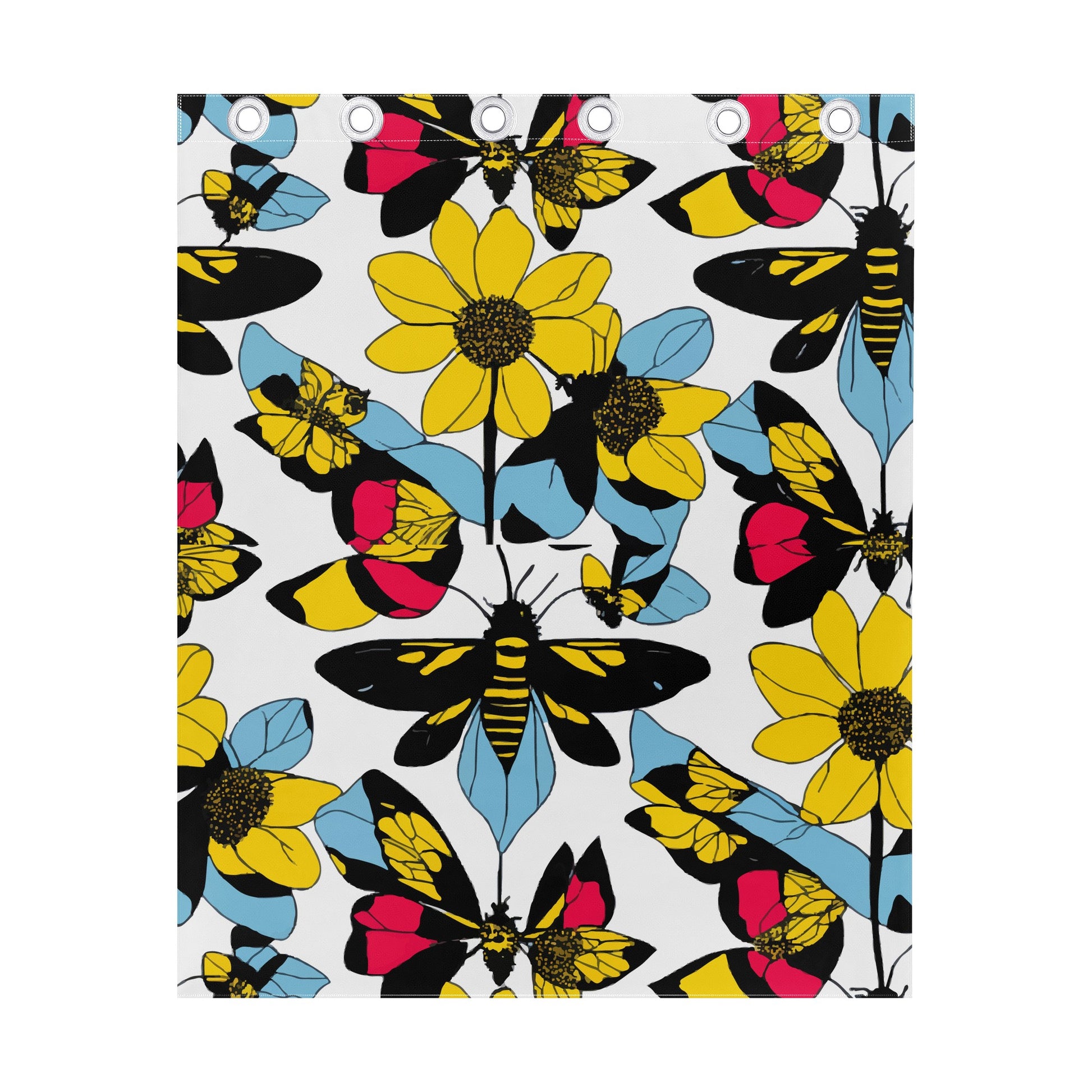 Experience the beauty of nature in your home with Luxtrini's Bees and Sunflowers Drapes Short. This stunning curtain showcases a captivating design featuring a sunflower in full bloom, surrounded by a swarm of busy bees collecting nectar. The sunflower is brought to life with vibrant, bold petals and a striking dark center disk, while the bees are intricately detailed, with wings seemingly in motion as they hover over the flower. Immerse yourself in the enchanting buzz of nature's harmony and bring the outdoors inside.