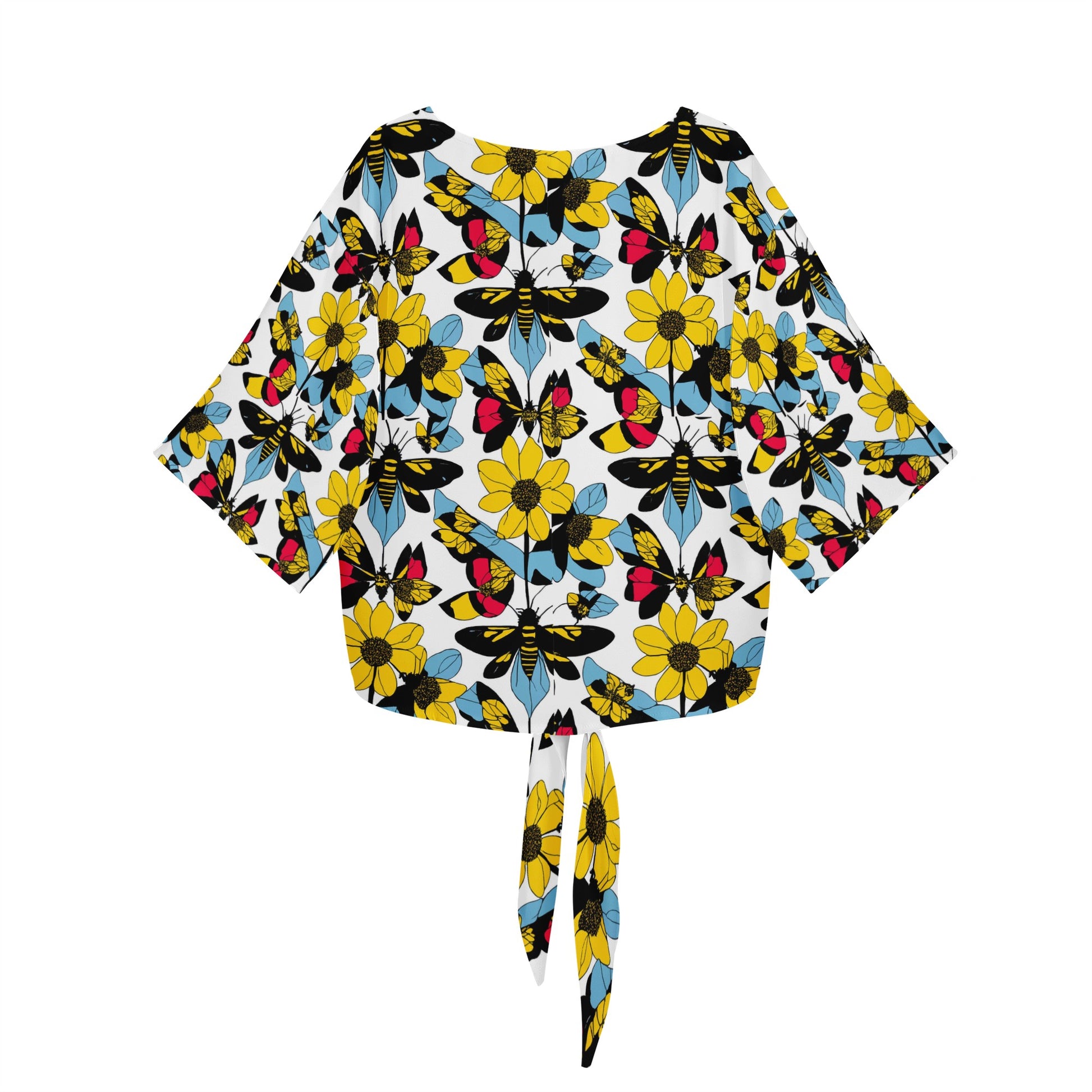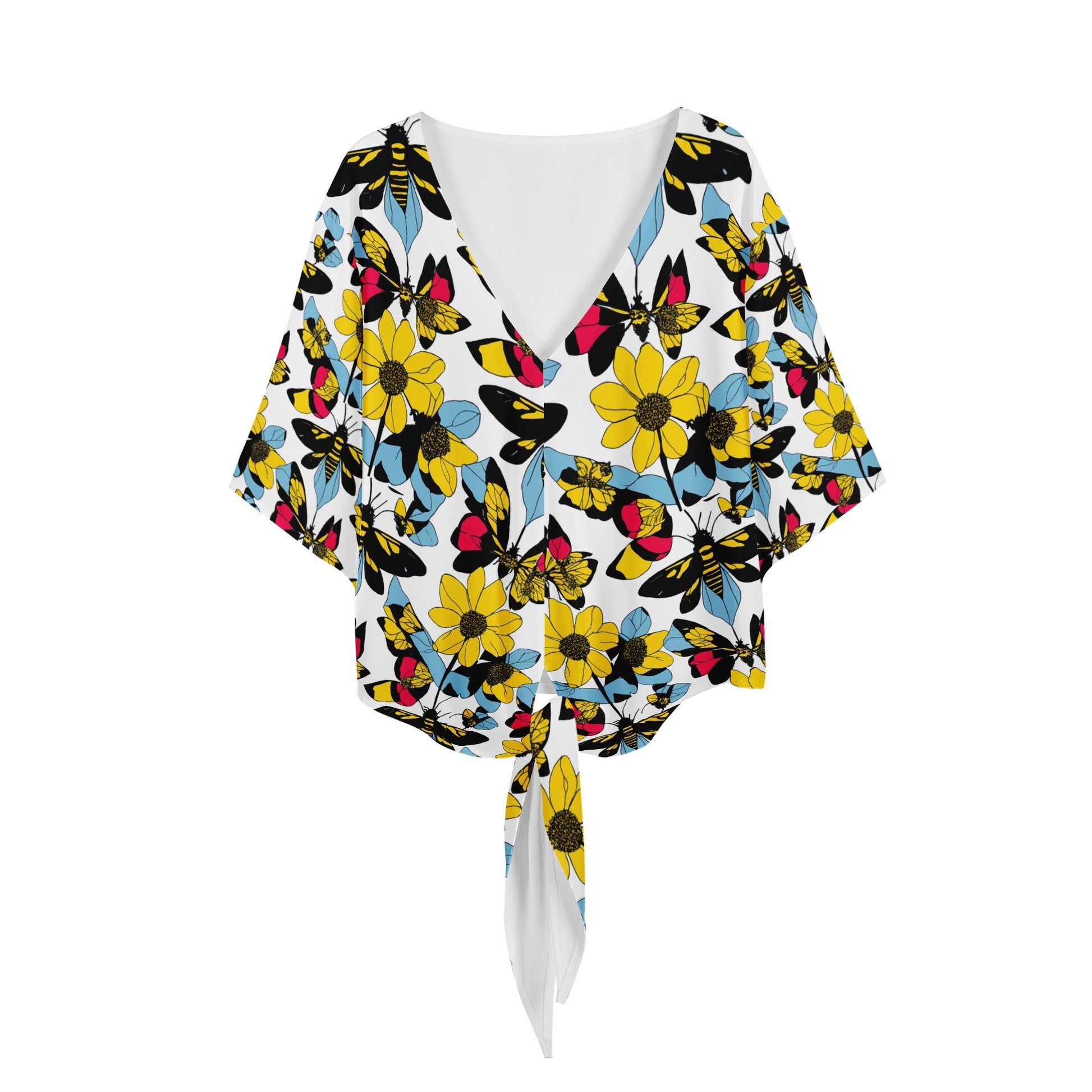 Luxtrini Bees And Sunflowers Women V-Neck Streamers Blouse