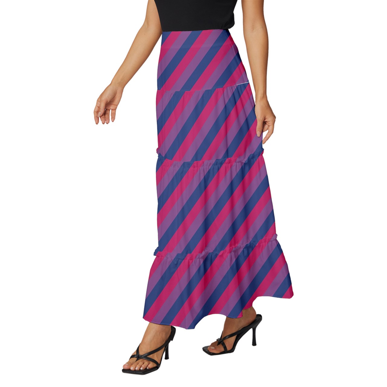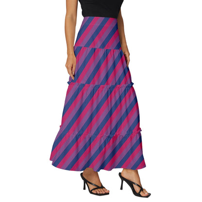 Bisexual Flag Tiered Ruffle Maxi Skirt