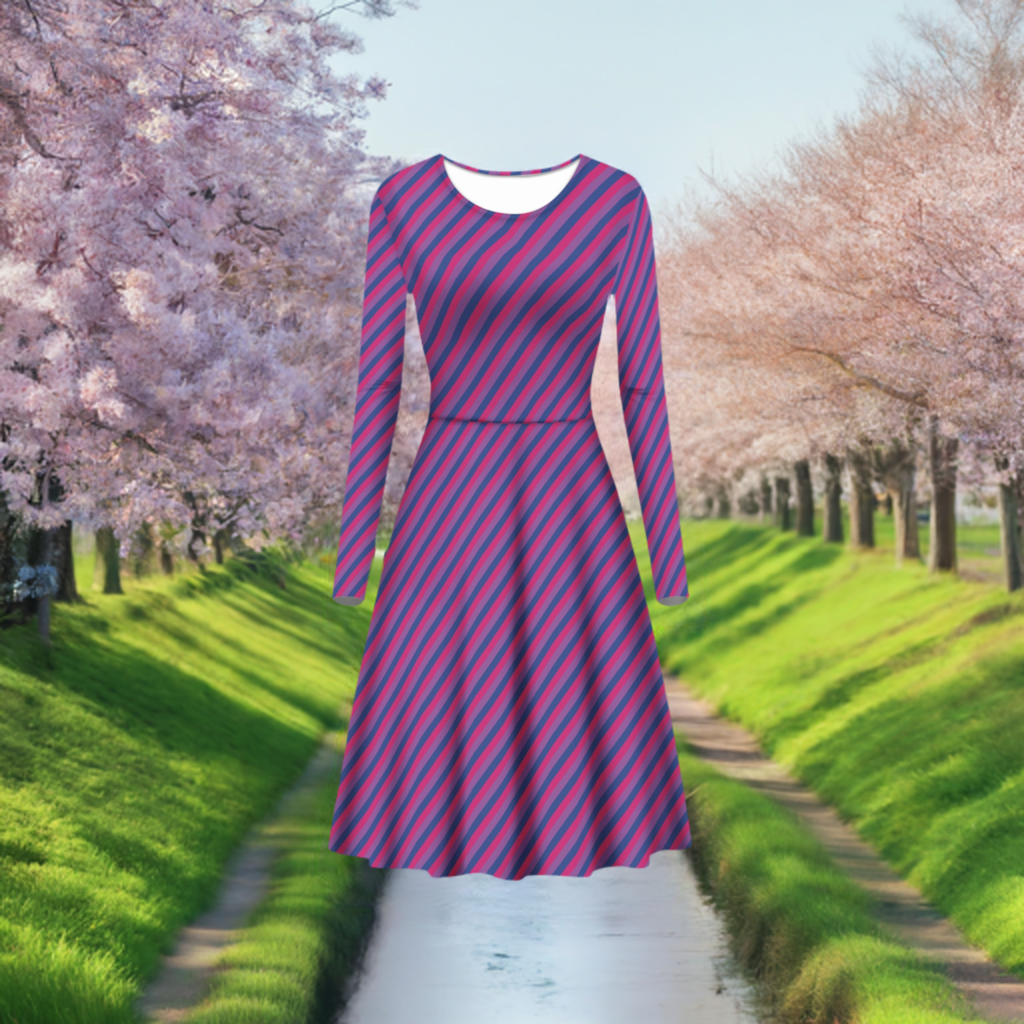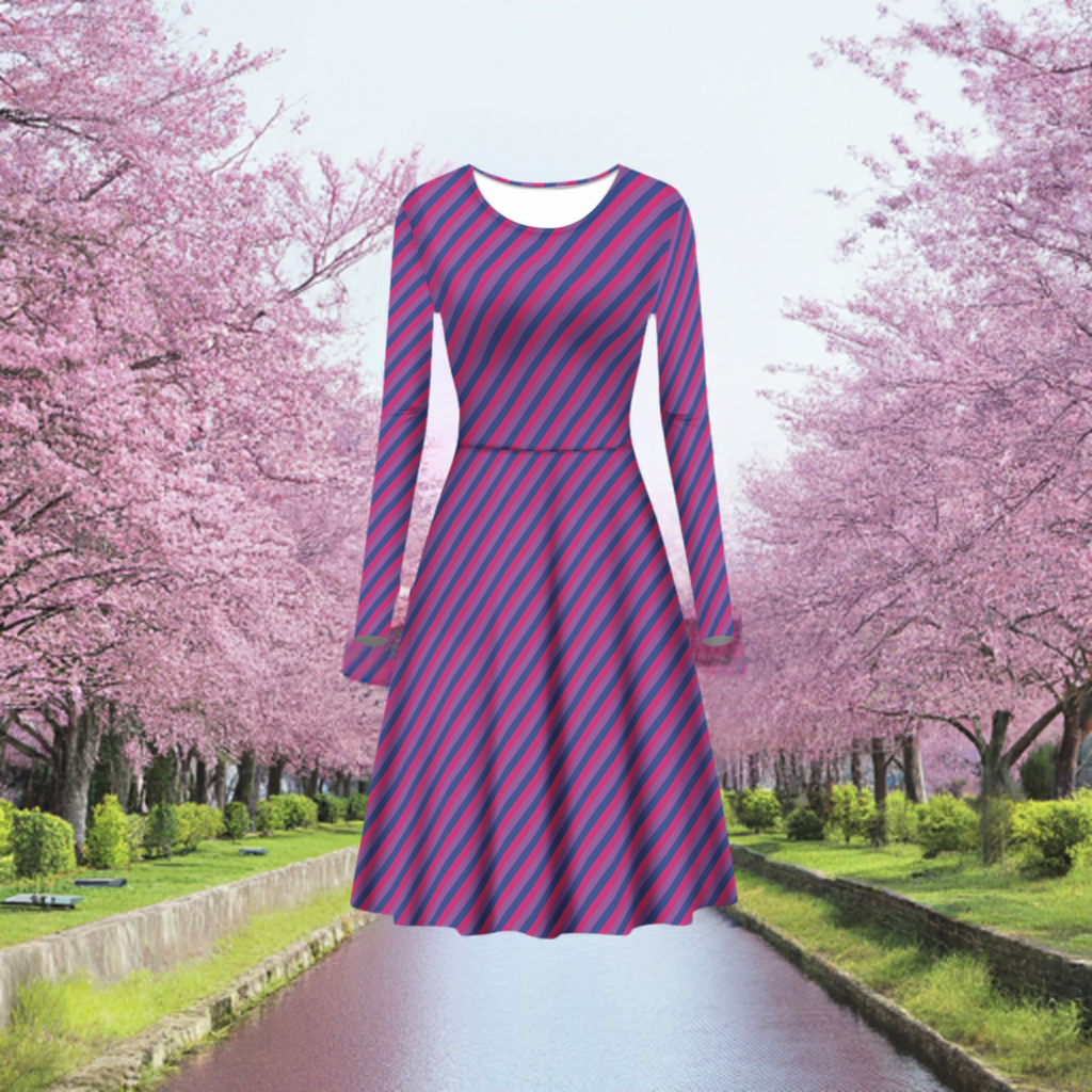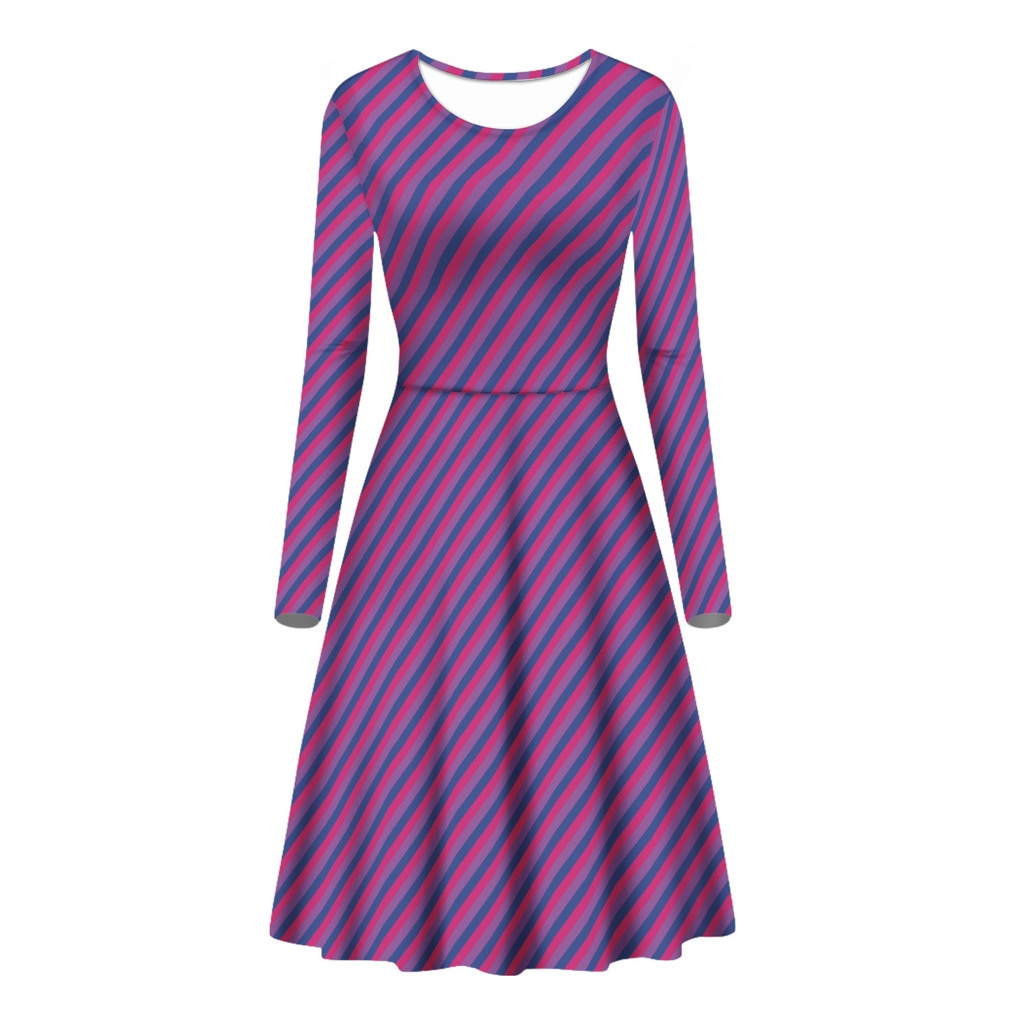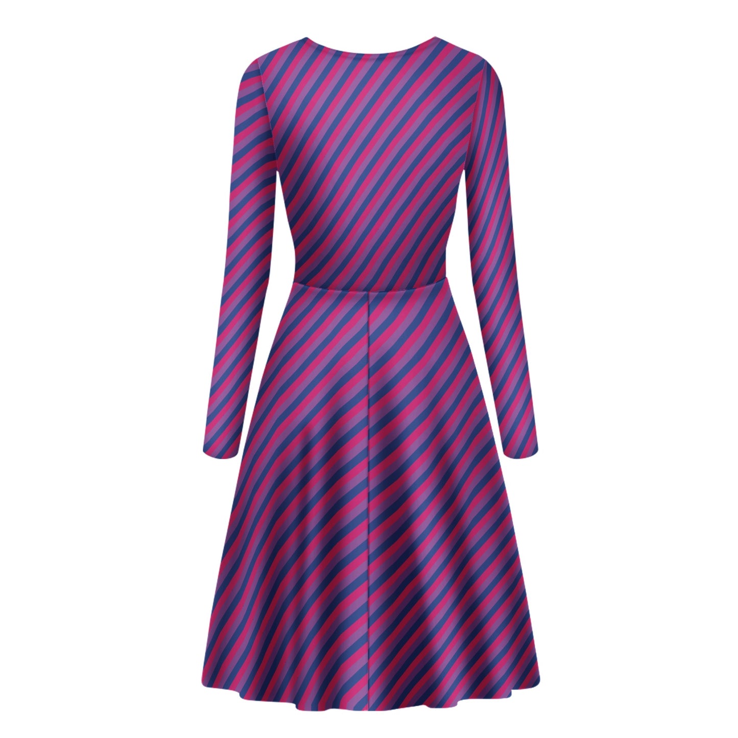 Bisexual Pride Women Long Sleeve Ruffle Dress