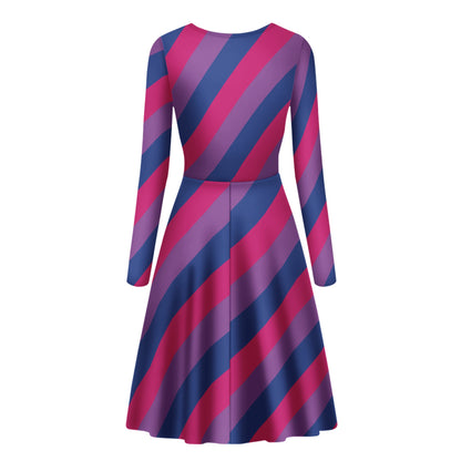 Bisexual Pride Women Long Sleeve Ruffle Dress