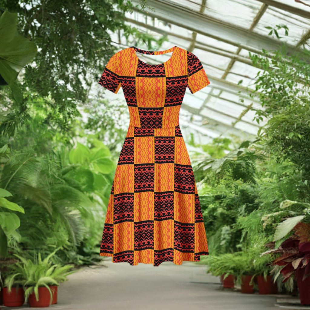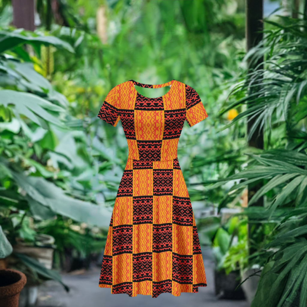 Black and Orange Tribal Design - Women Scoop Neck Ruffle Dress