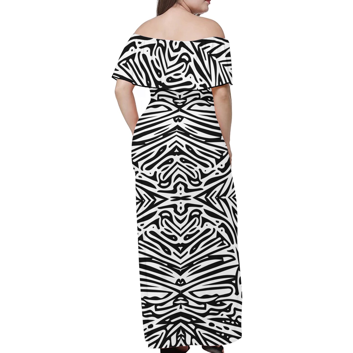 Luxtrini Tribal Black and White Women Off Shoulder Maxi Dress - Embrace Effortless Elegance