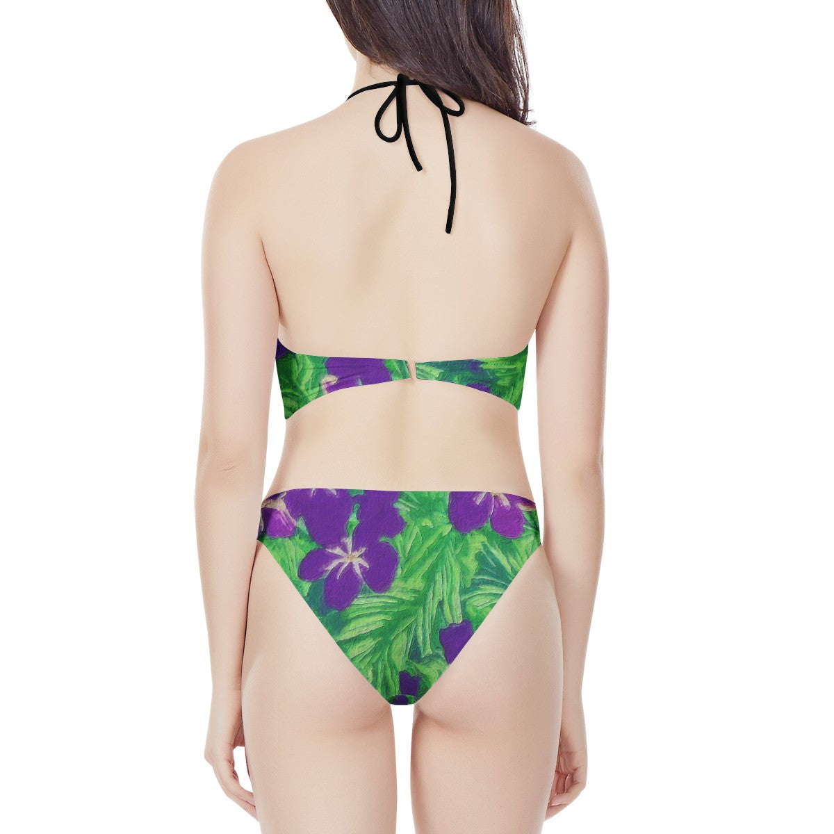 Blue Flag Iris Women's High Neck Bikini Swimsuit