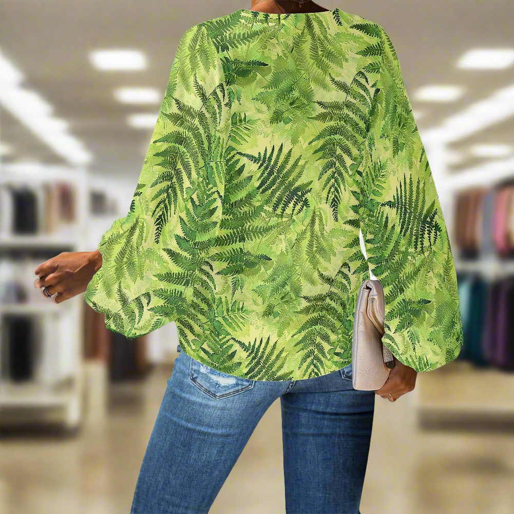 Palapalai V-Neck Women Puff Sleeve Chiffon Blouse