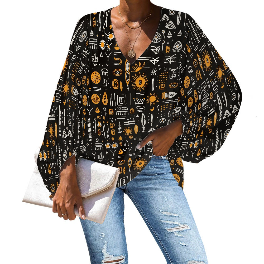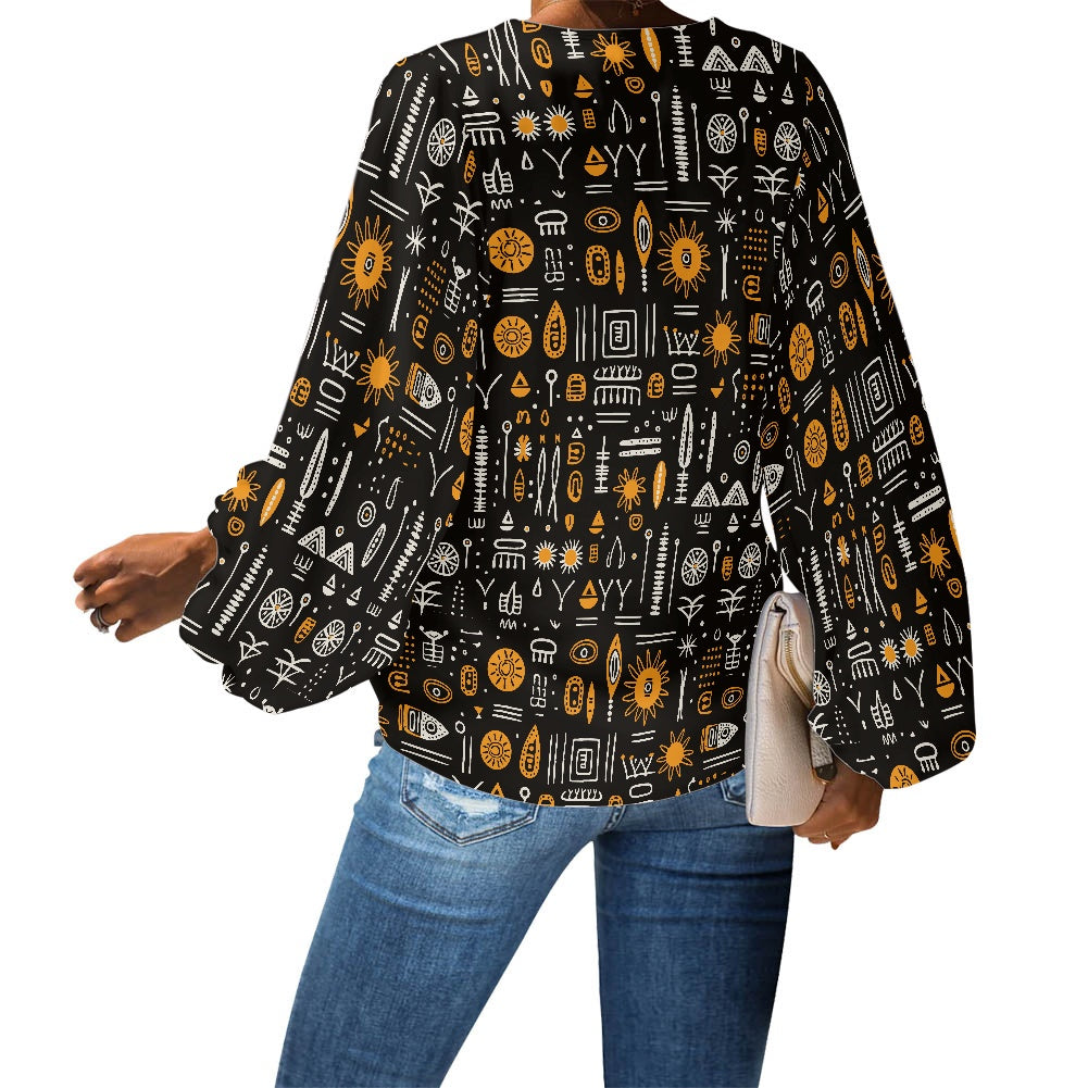 African Ethnic V-Neck Puff Sleeve Chiffon Blouse