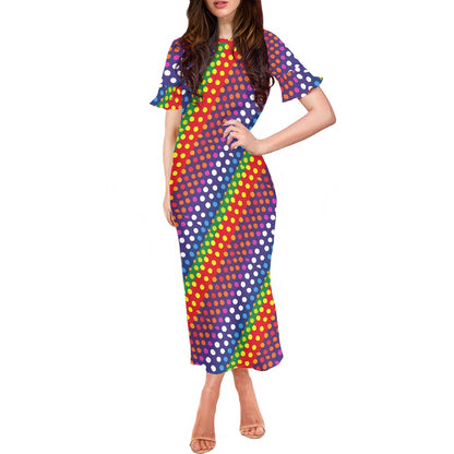 LGBTQ-Friendly Rainbow Polka Dot Stylish Scoop Neck Ankle-Length Dress with Unique Ruffled Sleeves for Women by Luxtrini