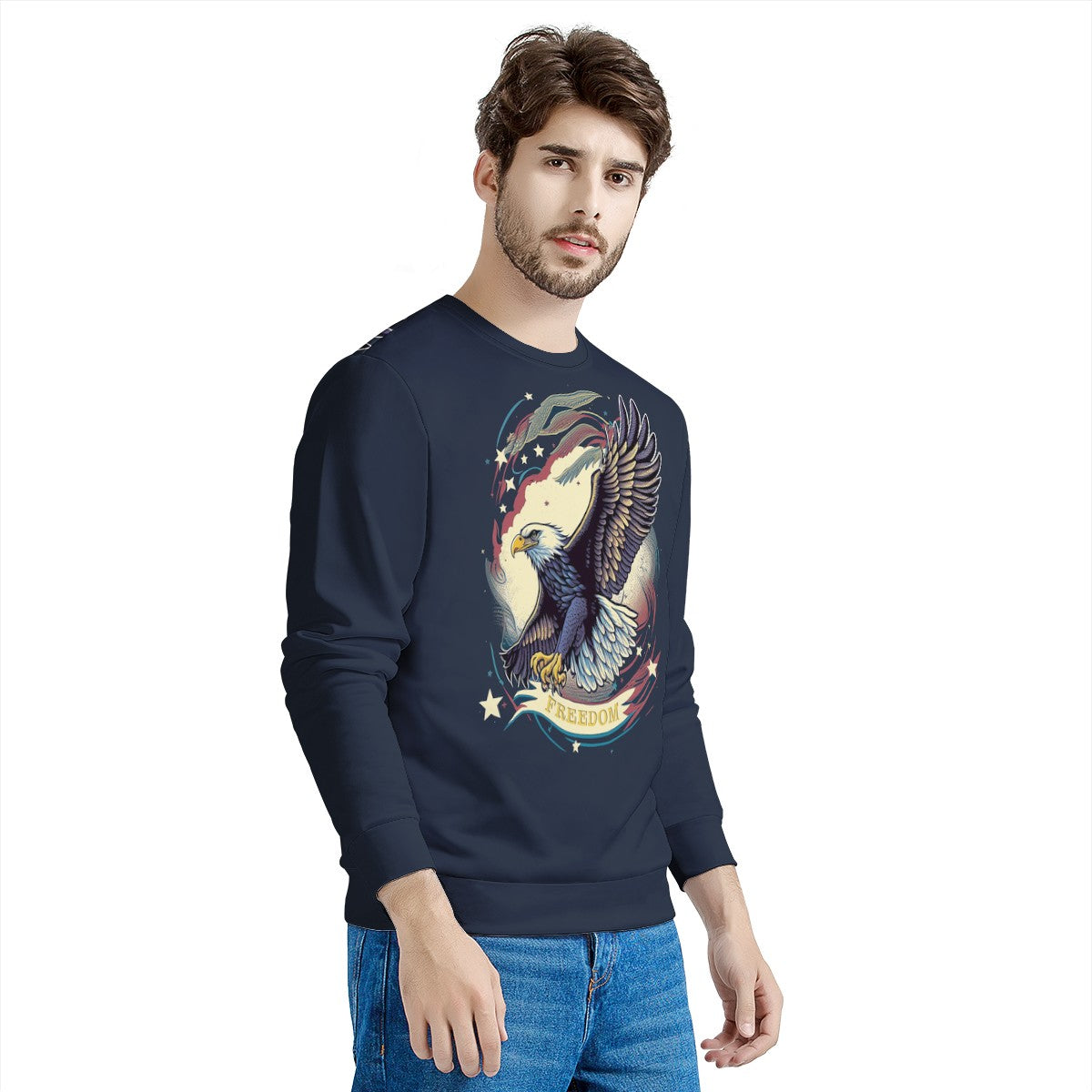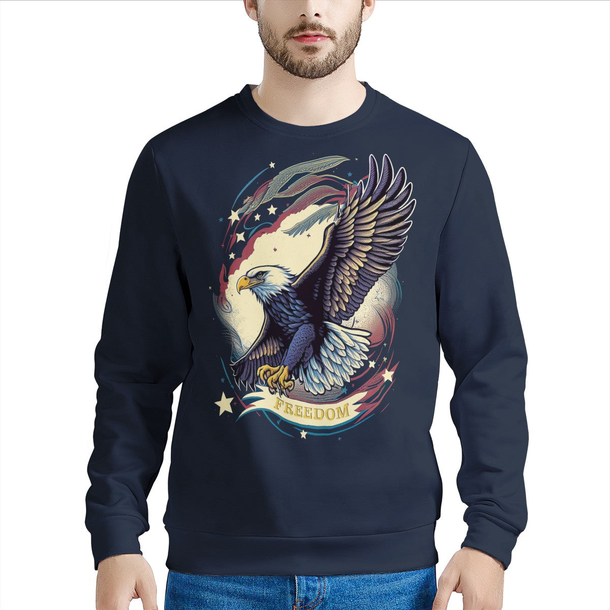 Freedom Flyer: Celebrating the Bald Eagle as a Symbol of Freedom and Strength in the USA Men's All Over Print Sweater