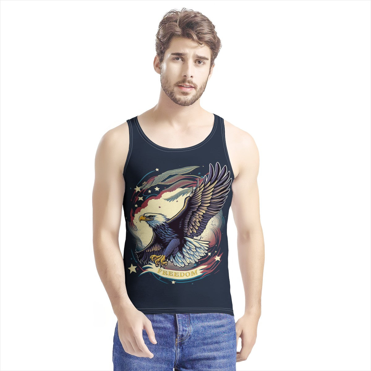 Freedom Flyer: Celebrating the Bald Eagle as a Symbol of Freedom and Strength in the USA Men's All Over Print Tank