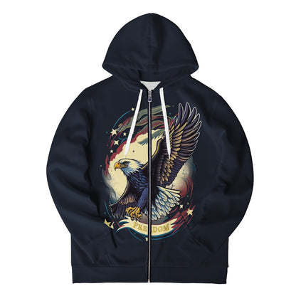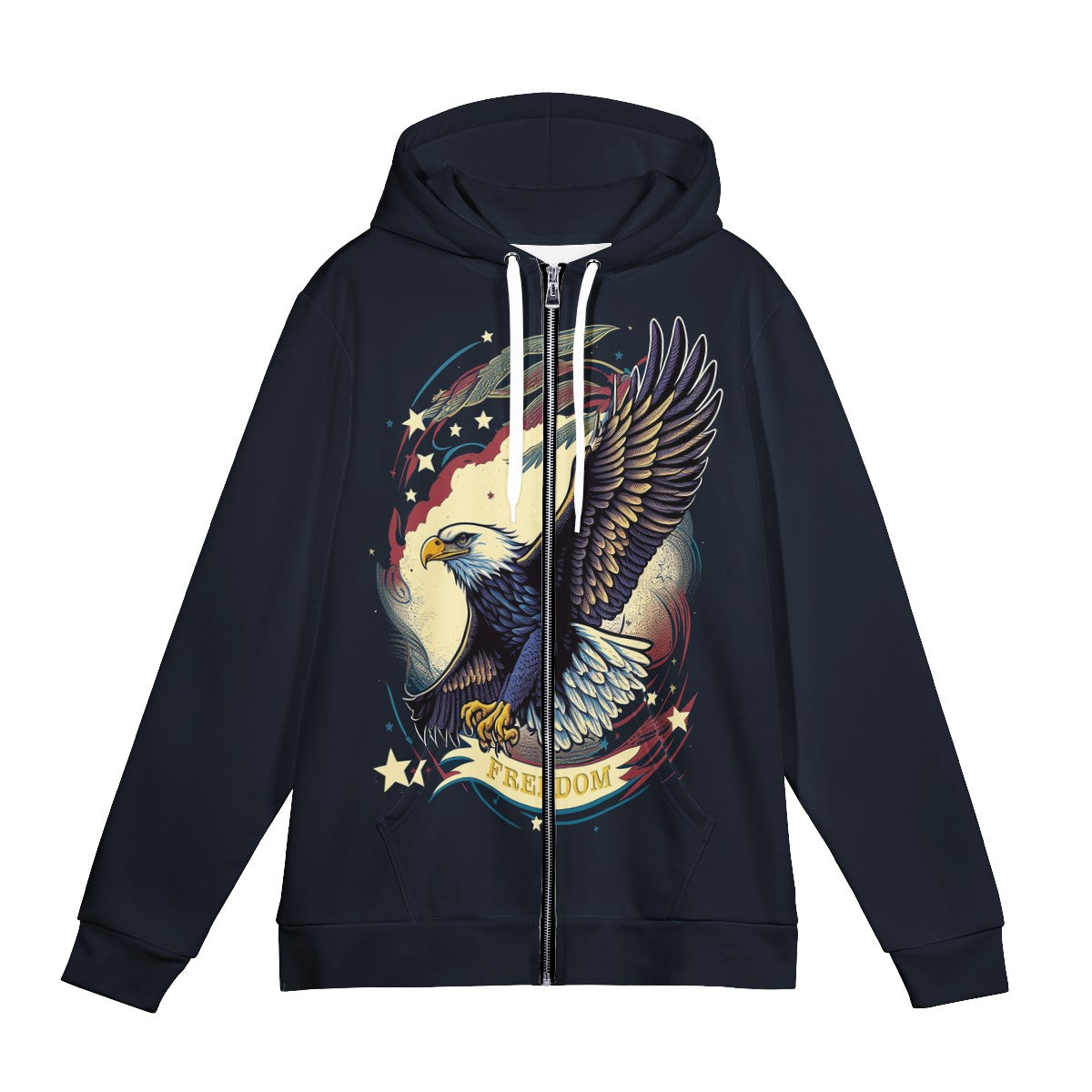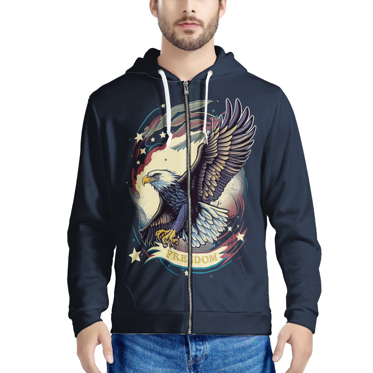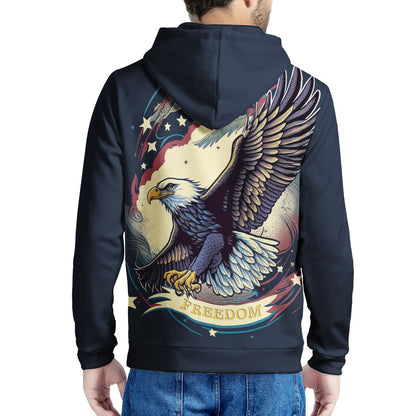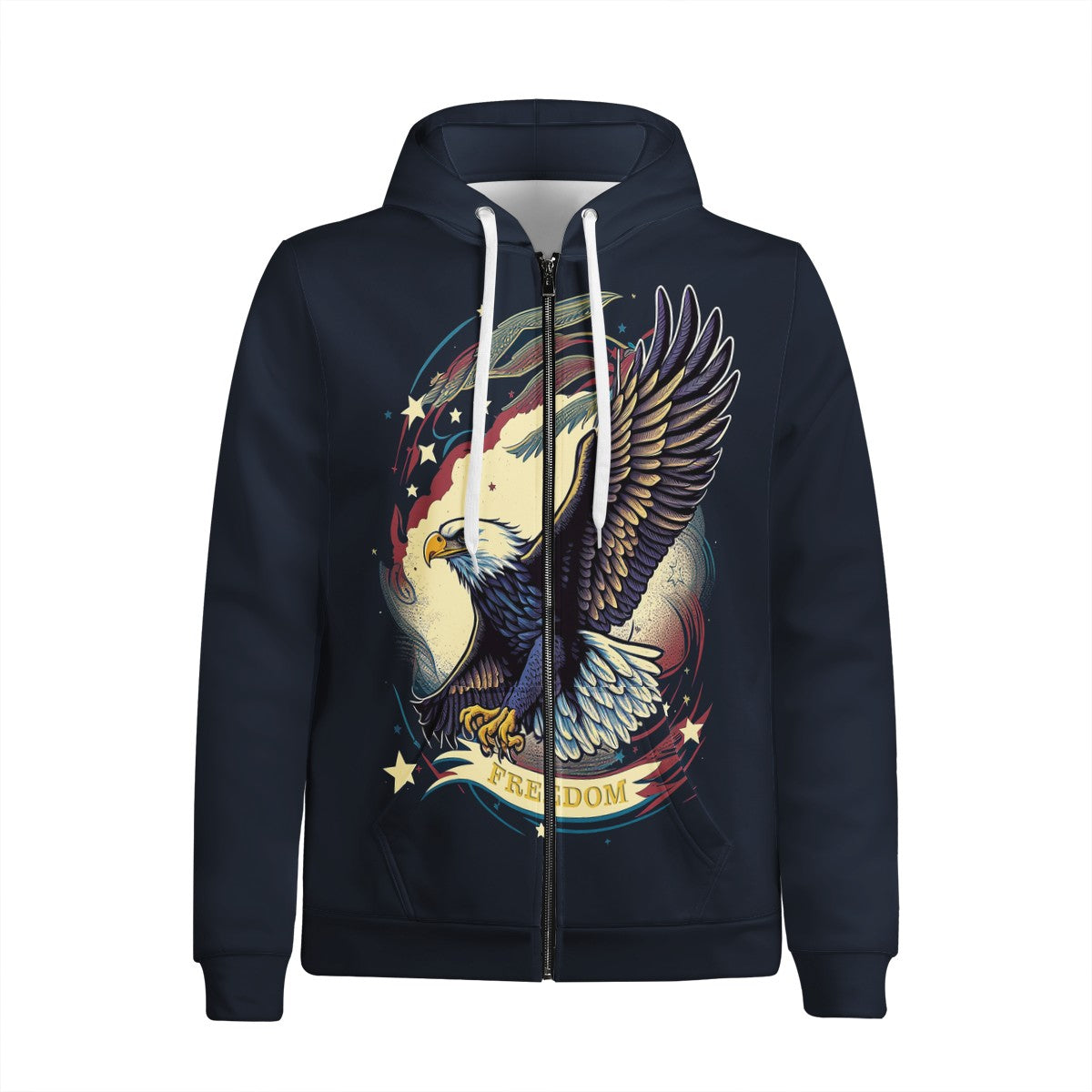 Freedom Flyer: Celebrating the Bald Eagle as a Symbol of Freedom and Strength in the USA Men's All Over Print Zip Hoodie