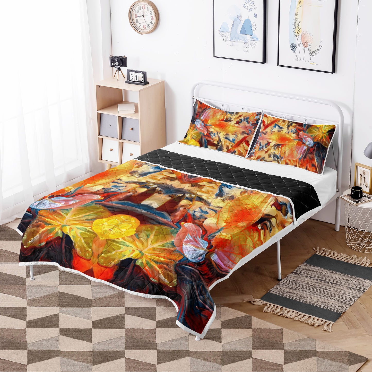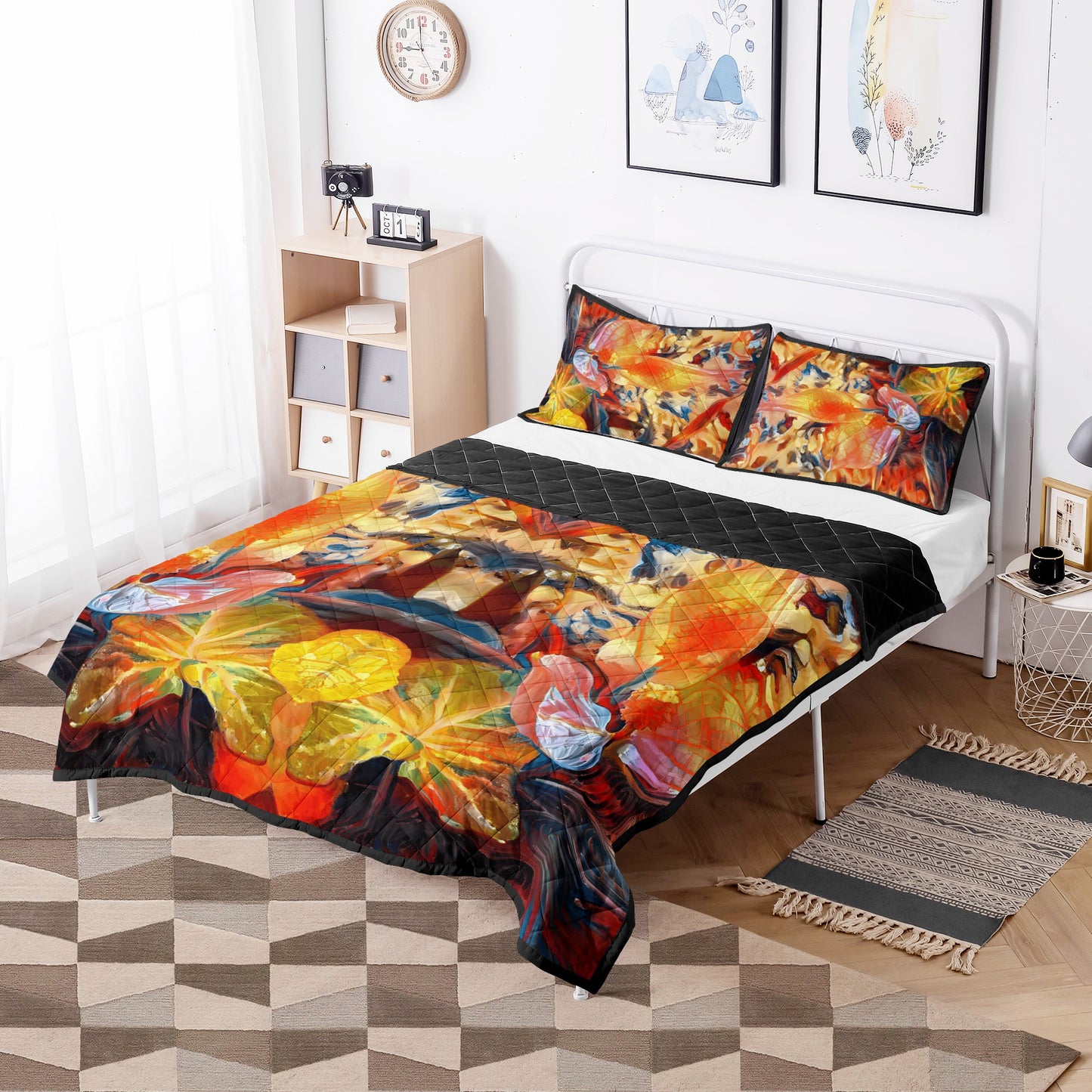 Each quilt bed set features a premium polyester front print. -