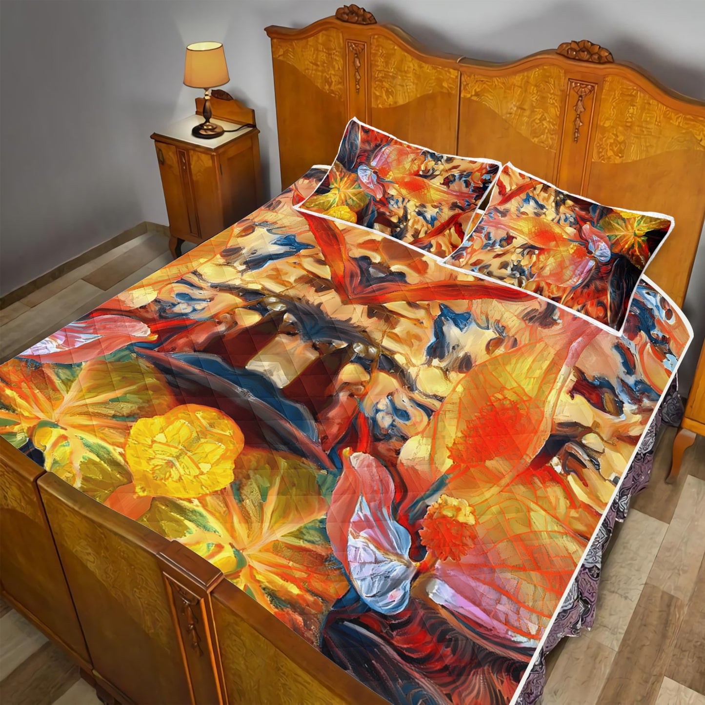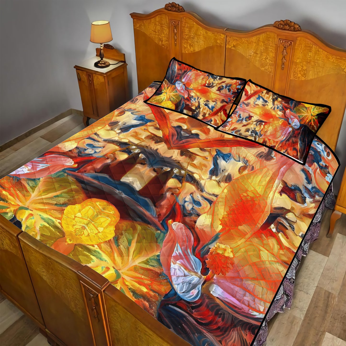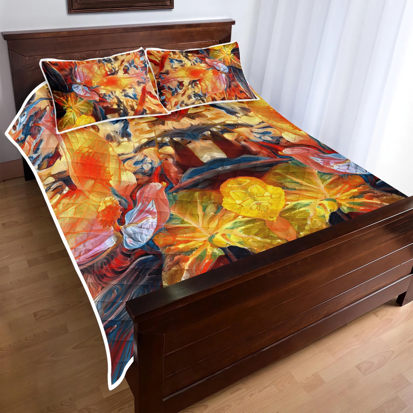 Golden Peace Lily Quilt Bed Set