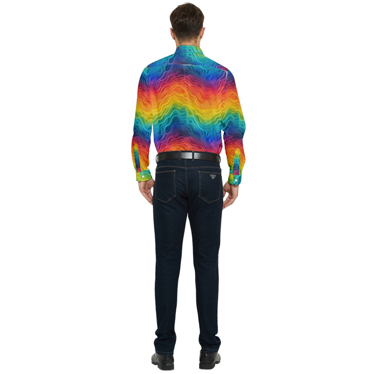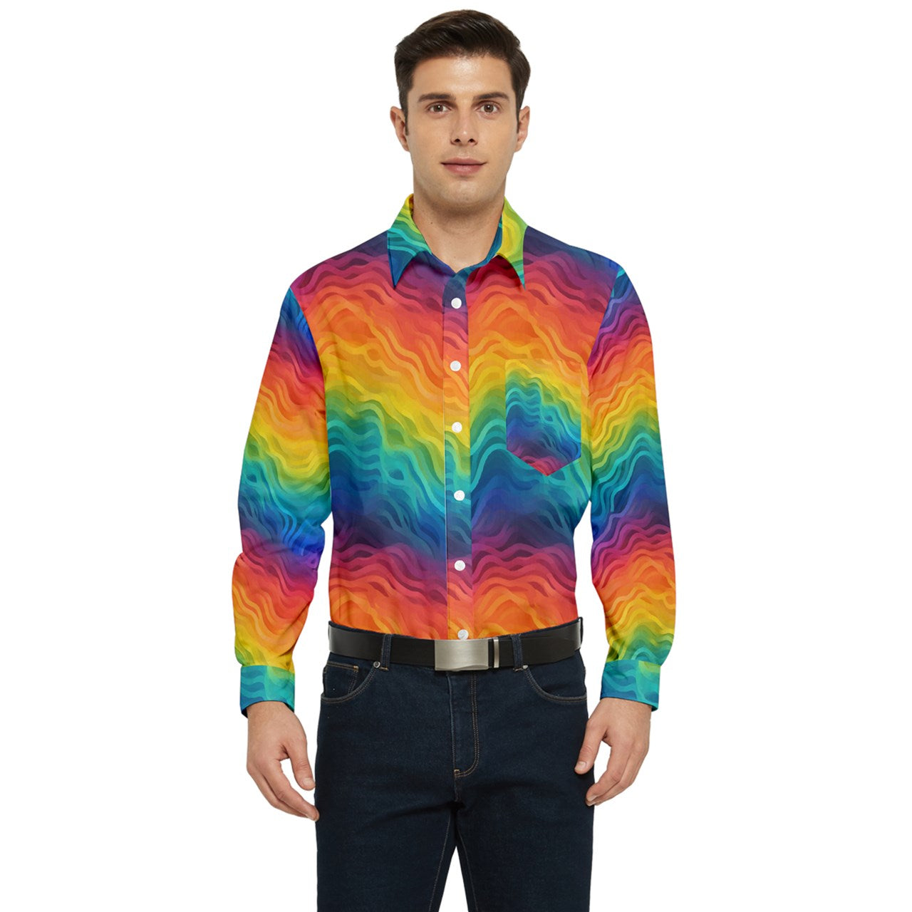 Embrace the Spectrum of Style with Luxtrini's LGBTQ Rainbow Men's Long Sleeve Pocket Shirt
