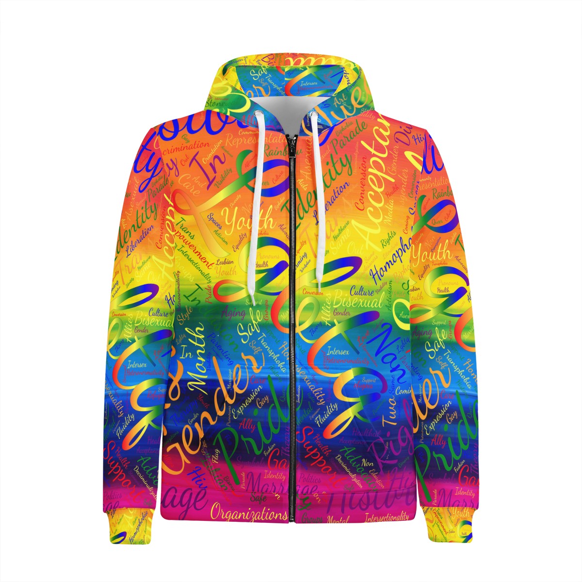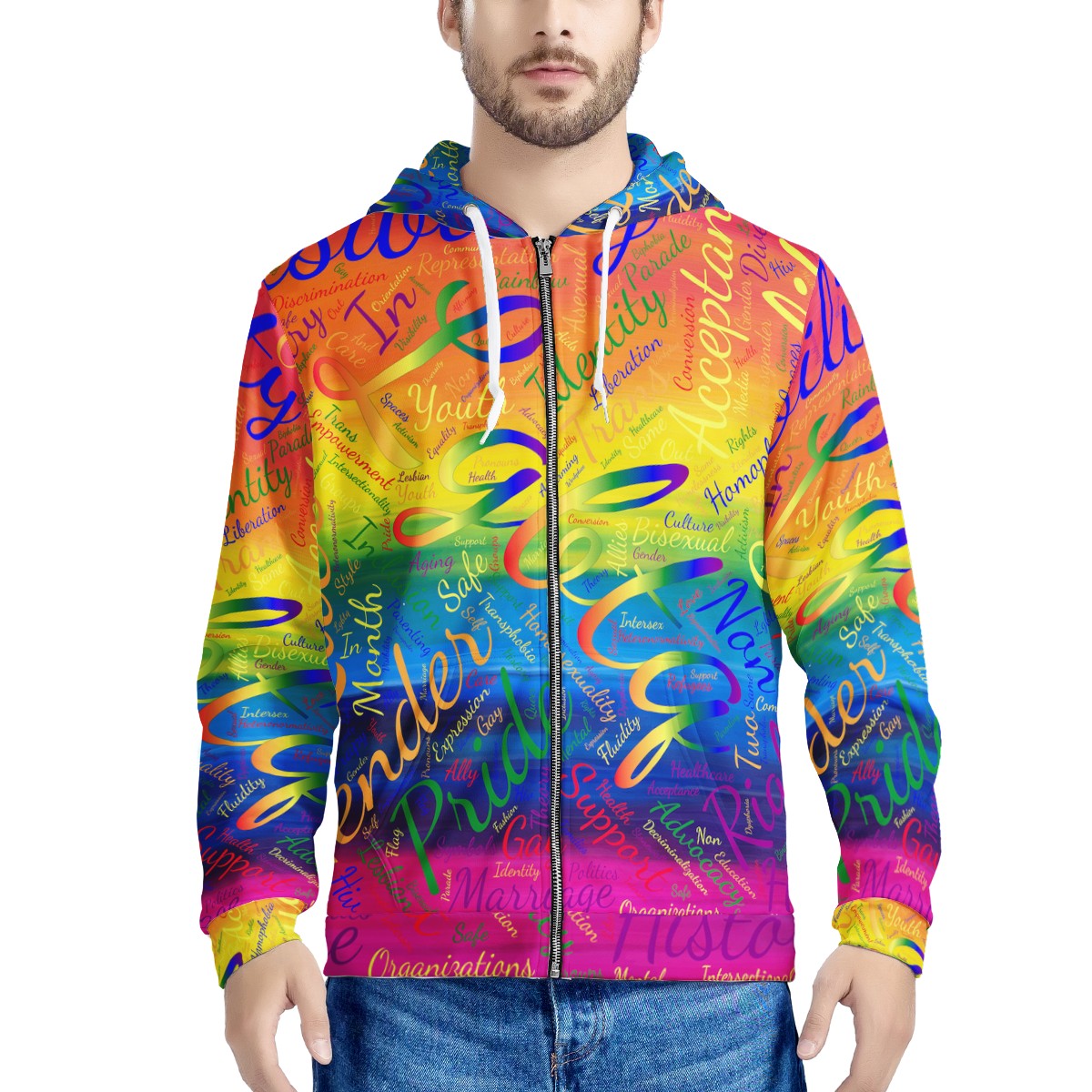 LGBTQ Word Cloud Men's All Over Print Zip Hoodie