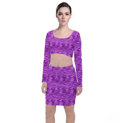 Long Sleeve Crop Top & Bodycon Skirt Set Pink and Purple Stripes