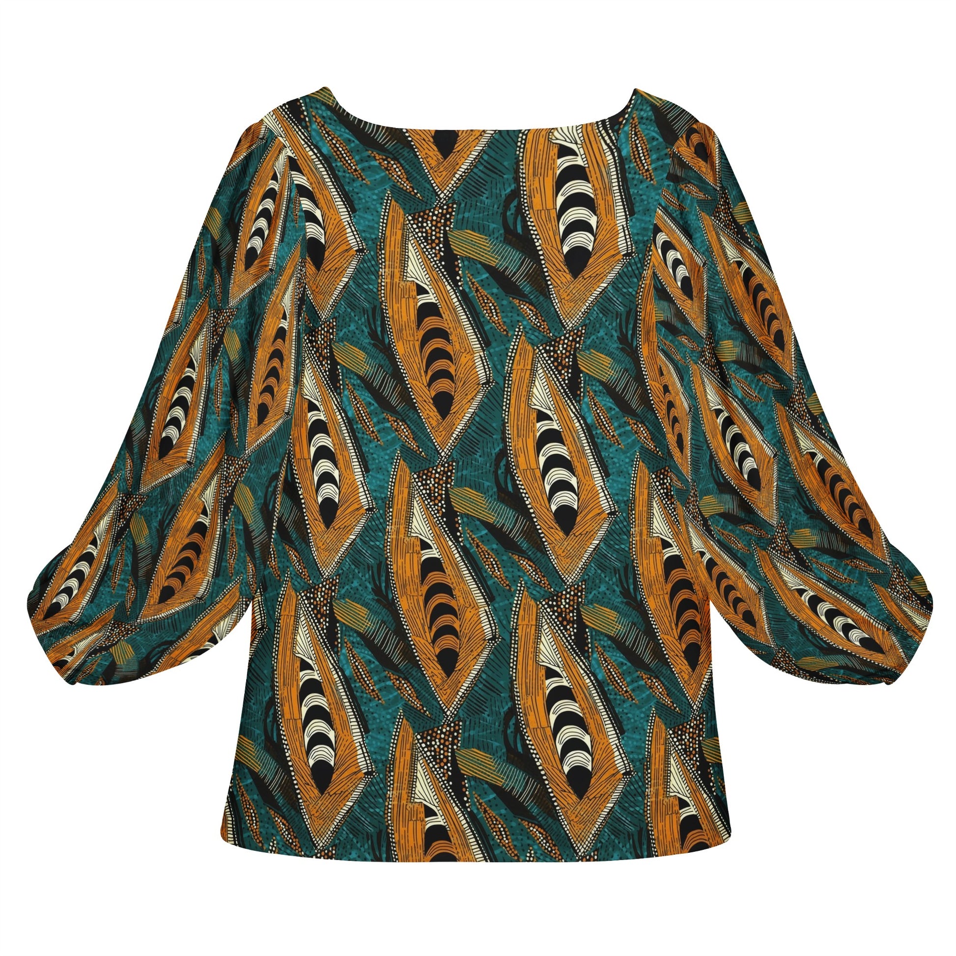 Luxtrini African Print: A Vibrant Blend of Tradition and Style Women Long Sleeve Puff Sleeve Blouse