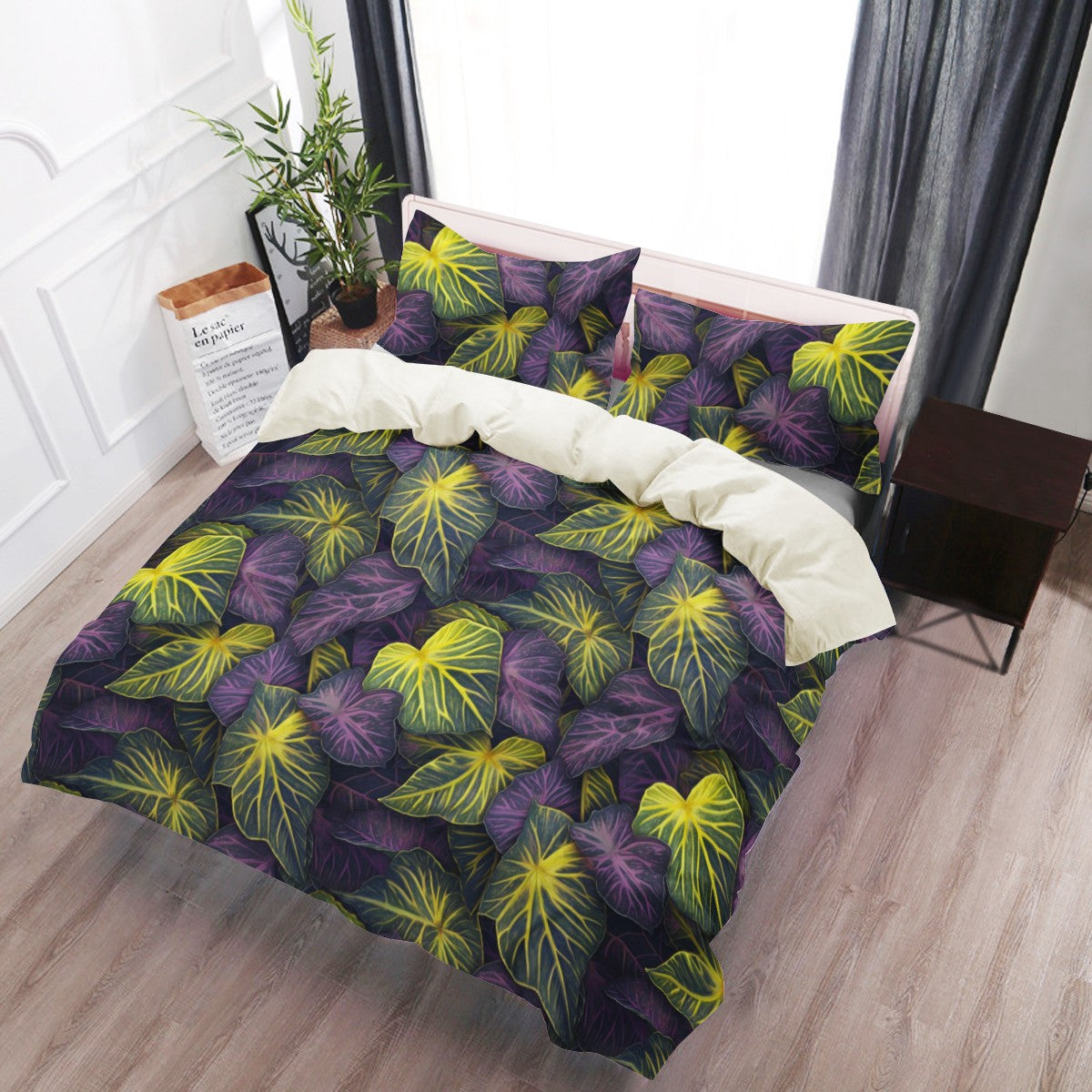 Luxtrini Iridescent Syngonium: Purple and Yellow 3 Pcs Beddings