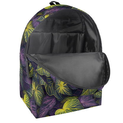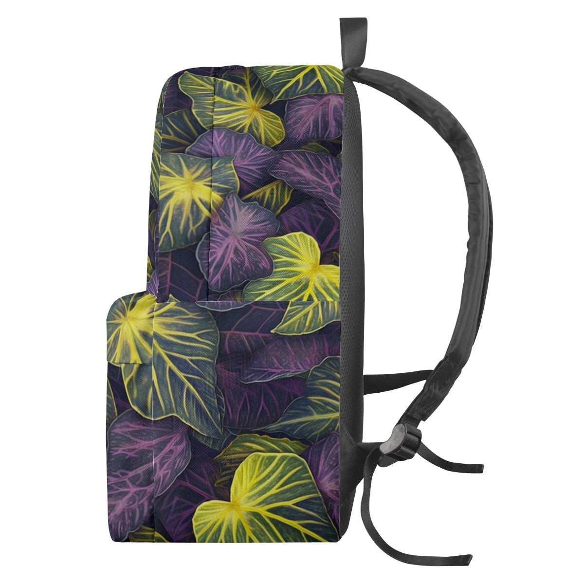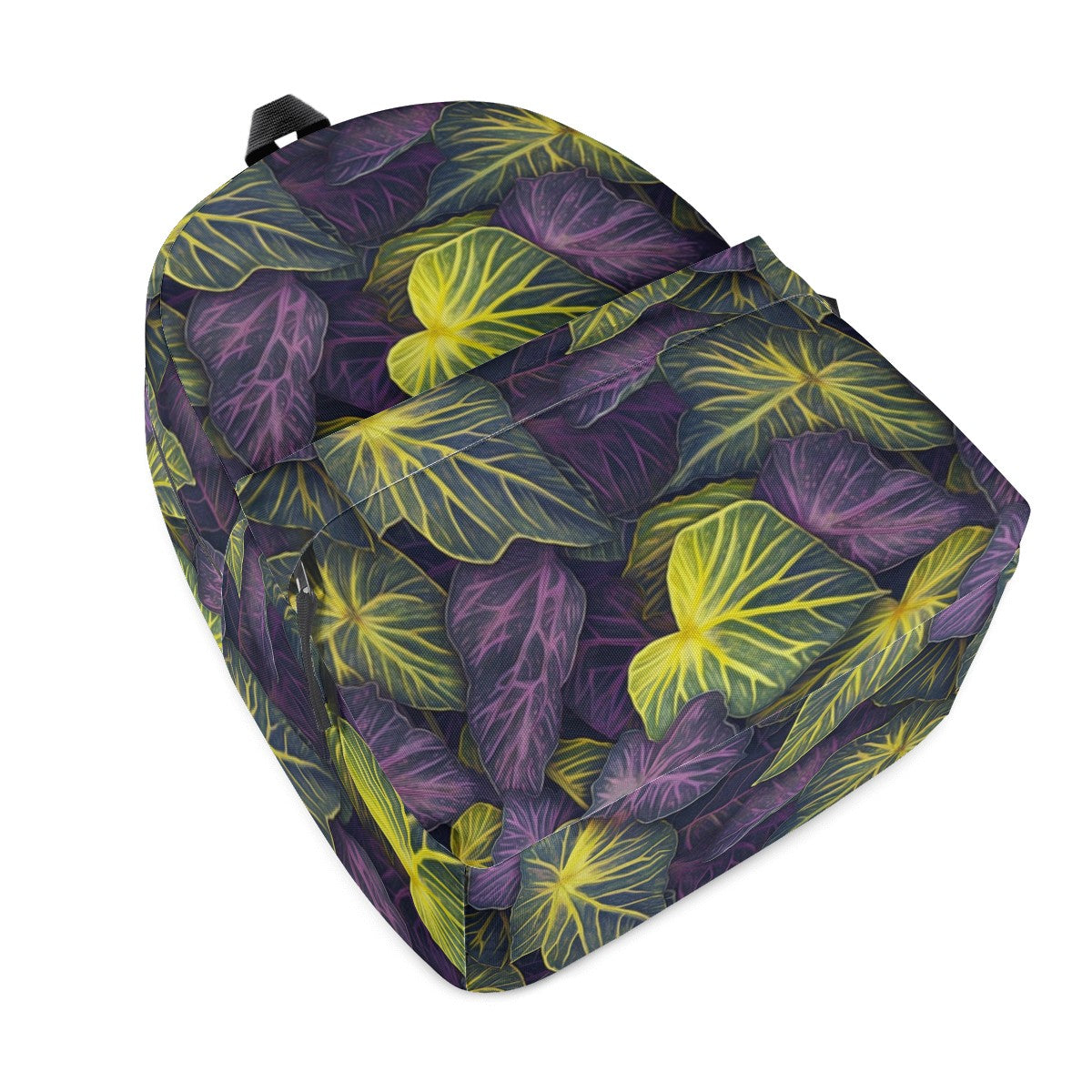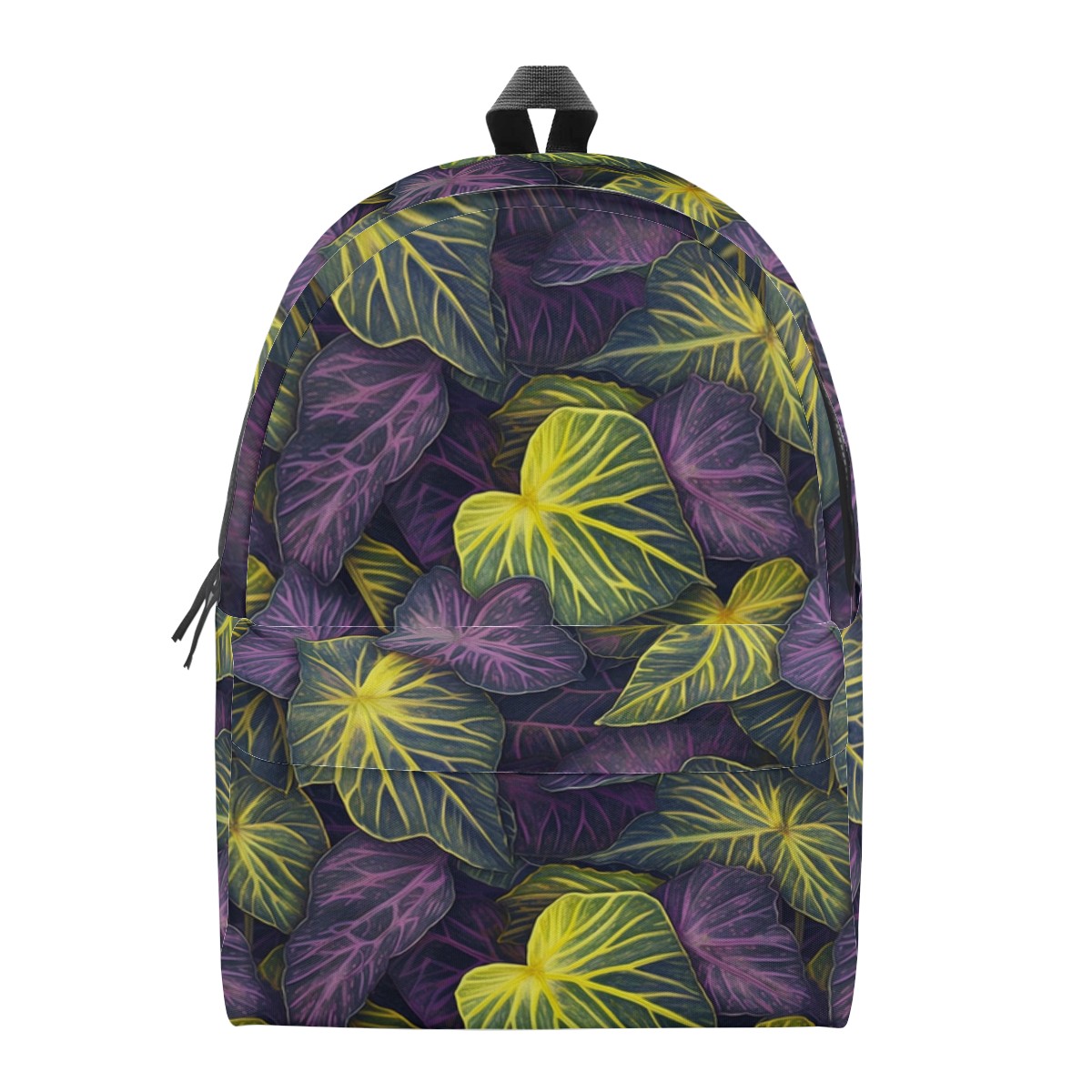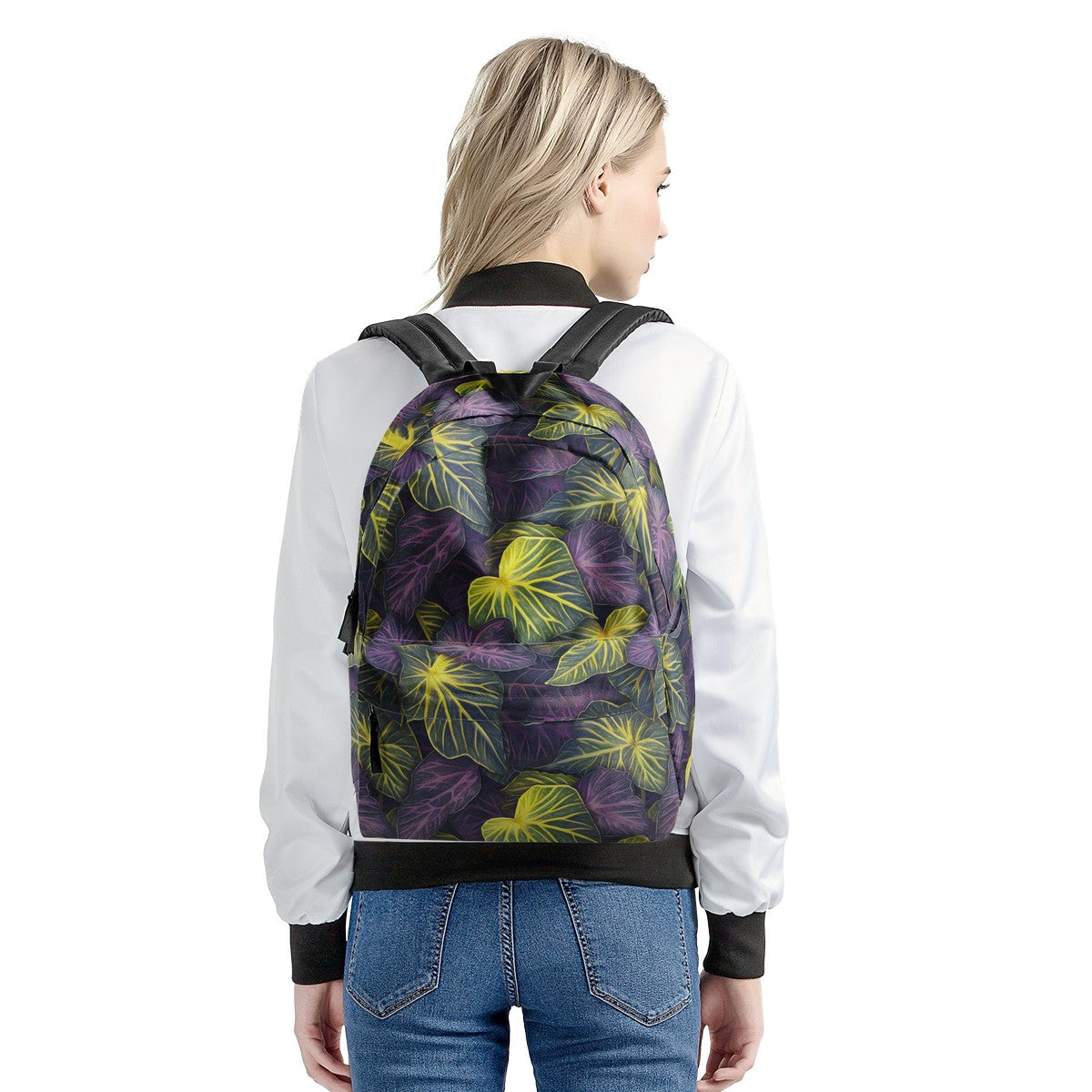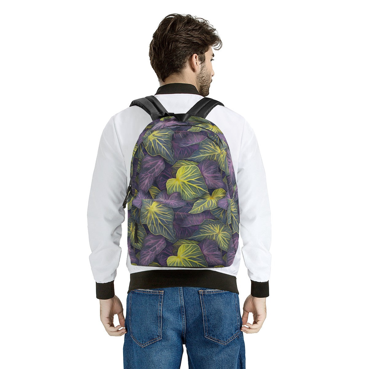 Luxtrini Iridescent Syngonium: Purple and Yellow All Over Print Cotton Backpack