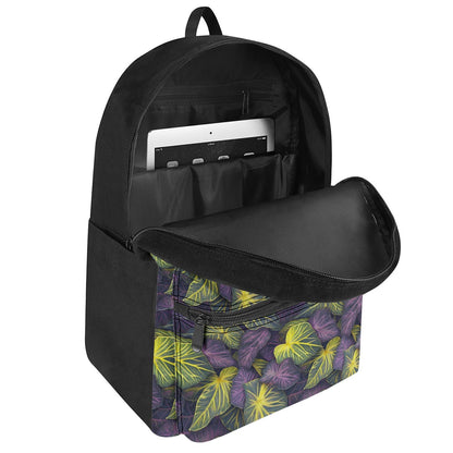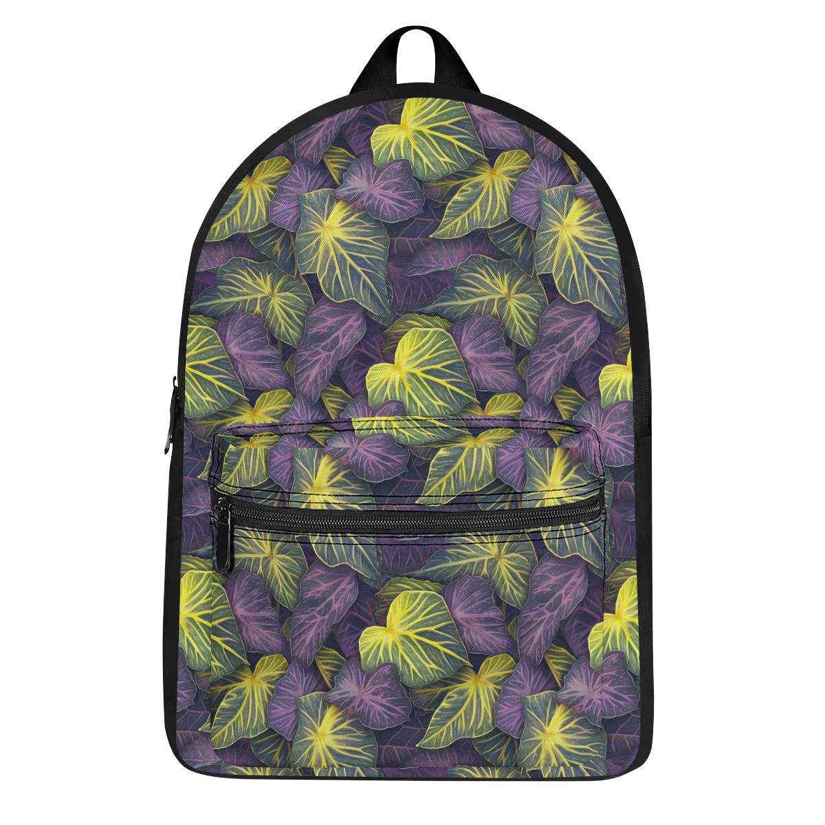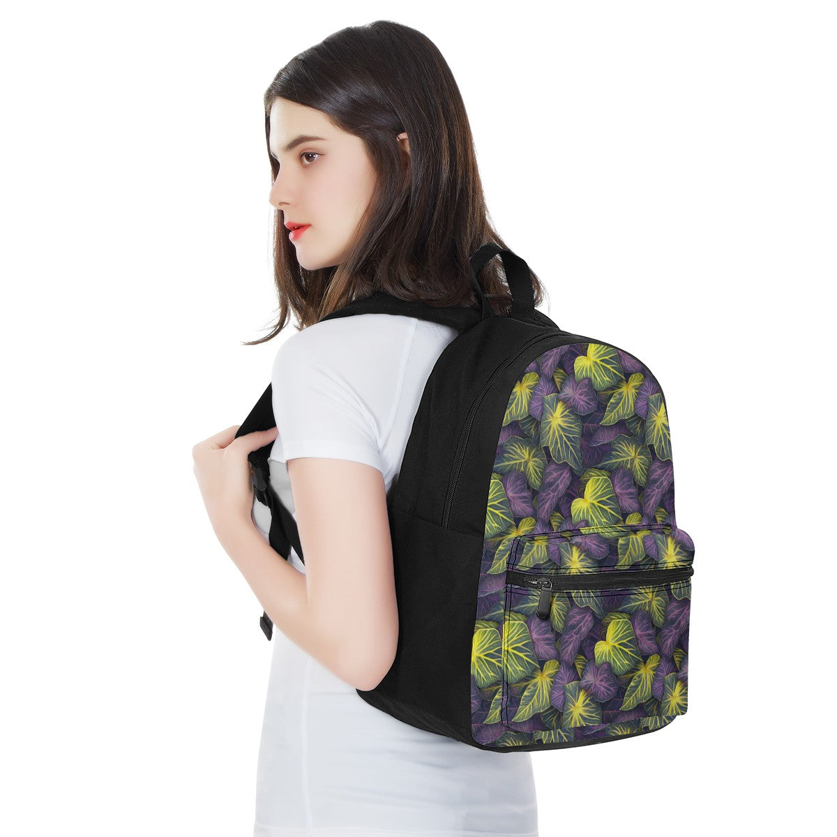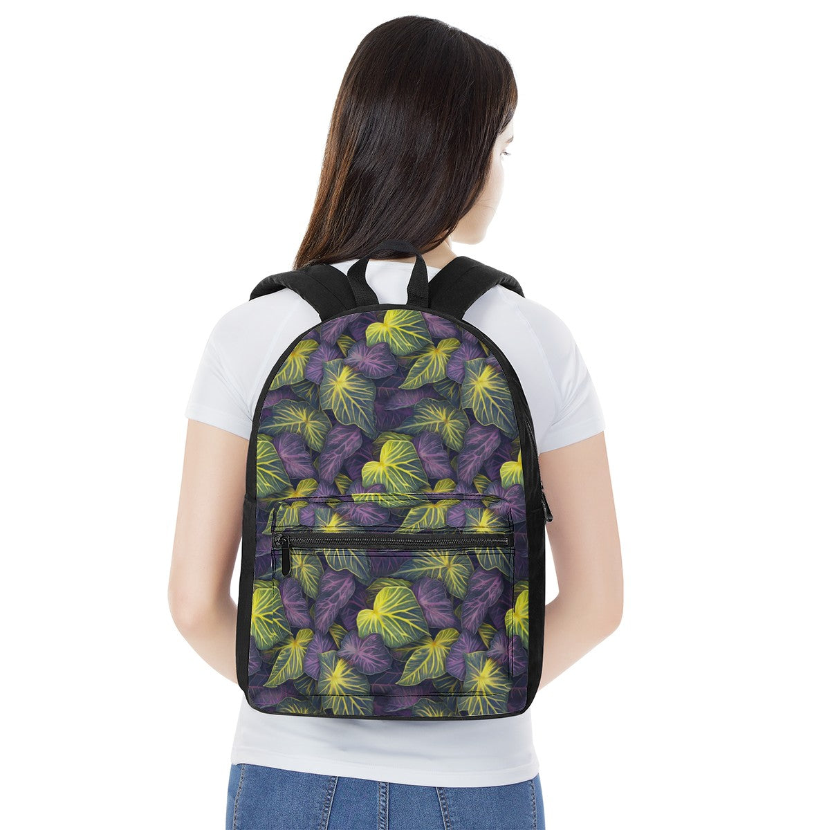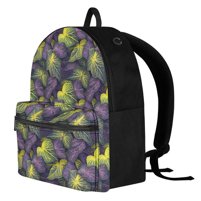 Luxtrini Iridescent Syngonium: Purple and Yellow Canvas Backpack
