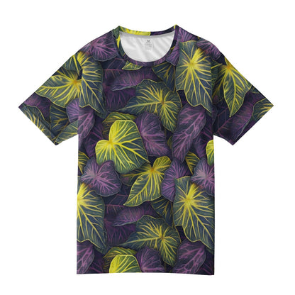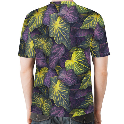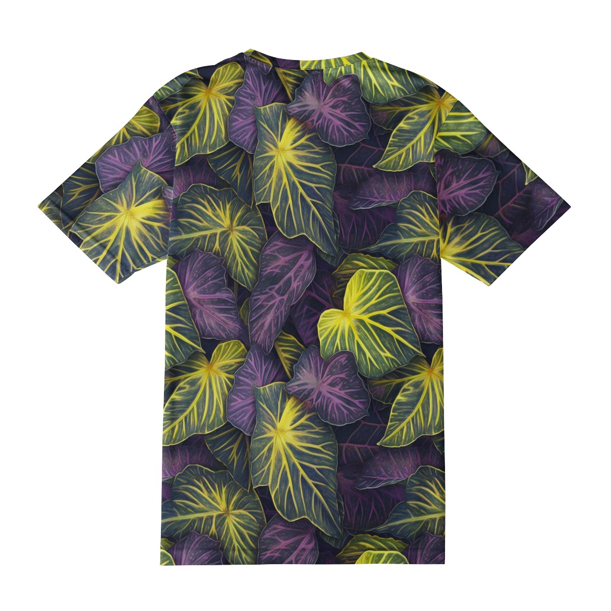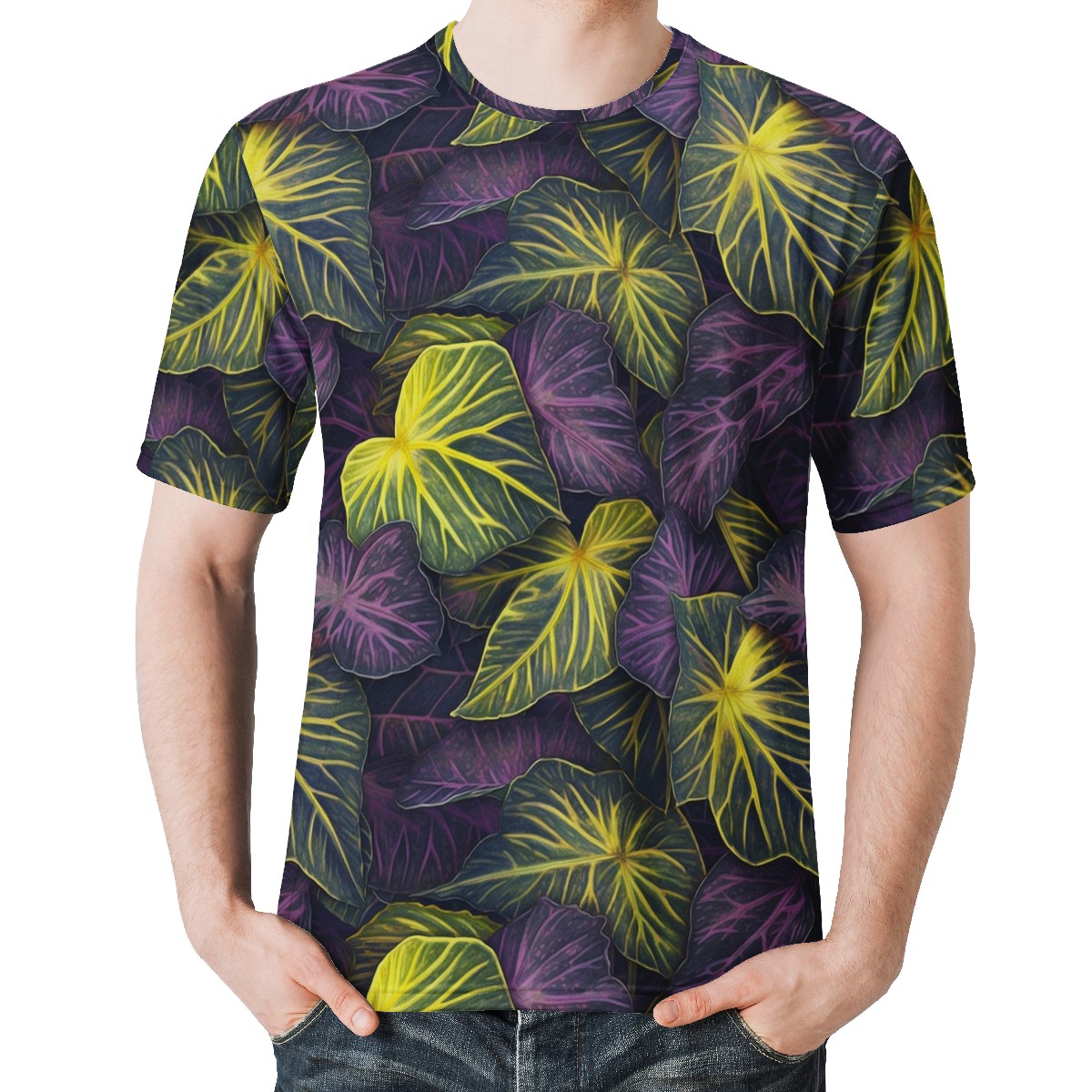 Luxtrini Iridescent Syngonium: Purple and Yellow Men's All Over Print Basic Tee