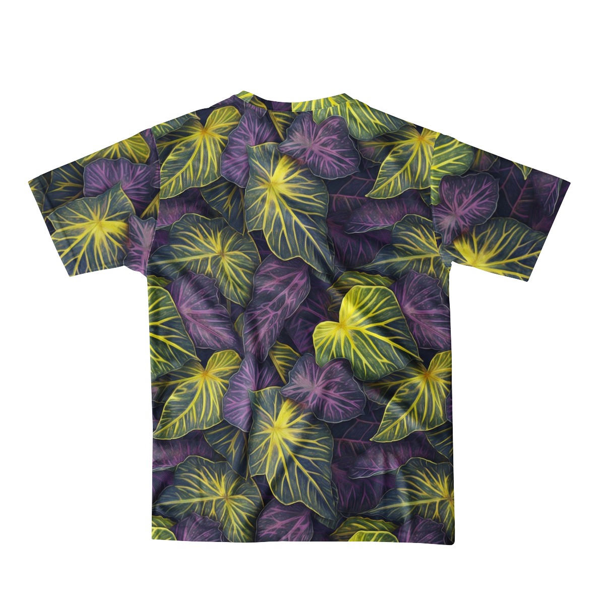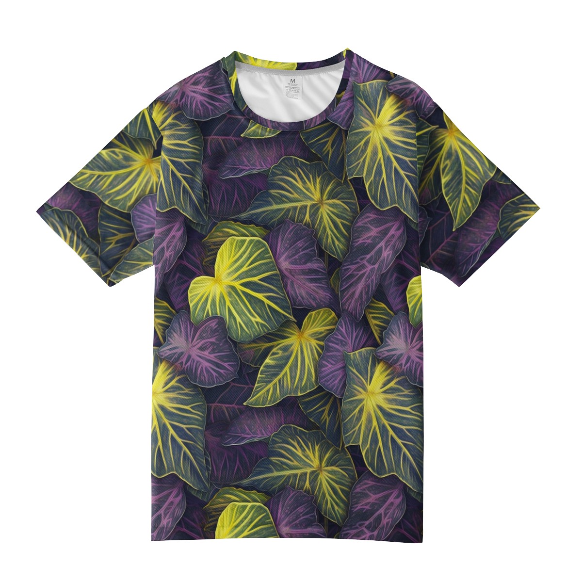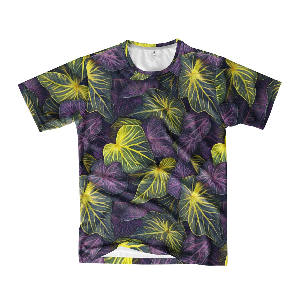 Luxtrini Iridescent Syngonium: Purple and Yellow Men's All Over Print Basic Tee