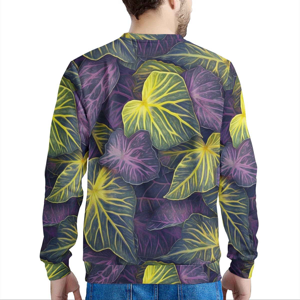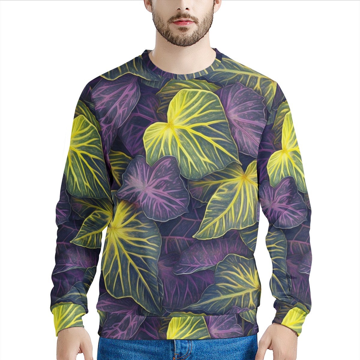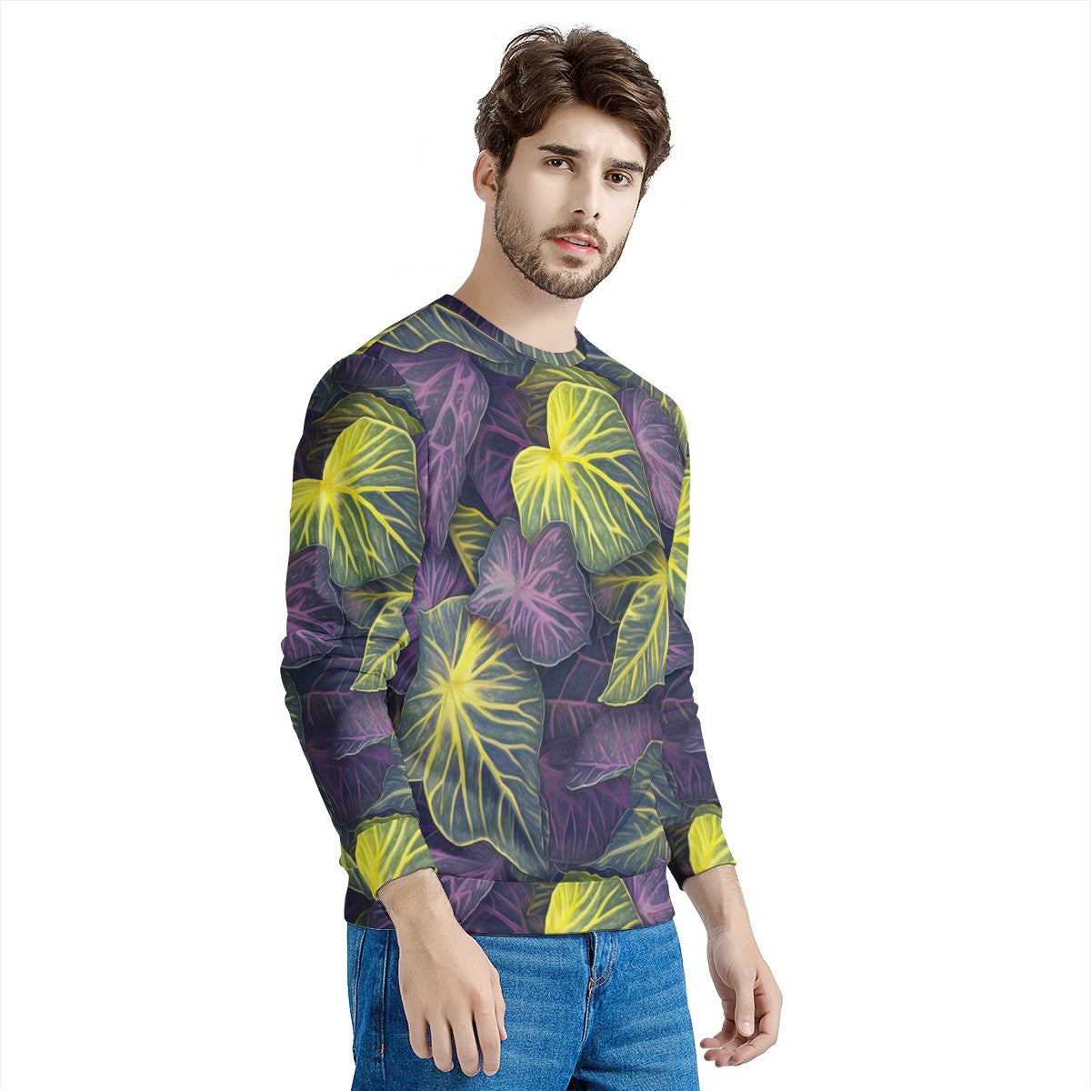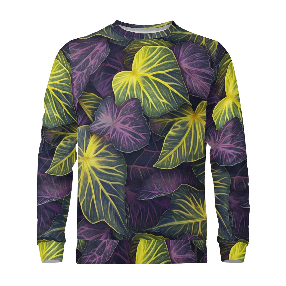Luxtrini Iridescent Syngonium: Purple and Yellow Men's All Over Print Sweater