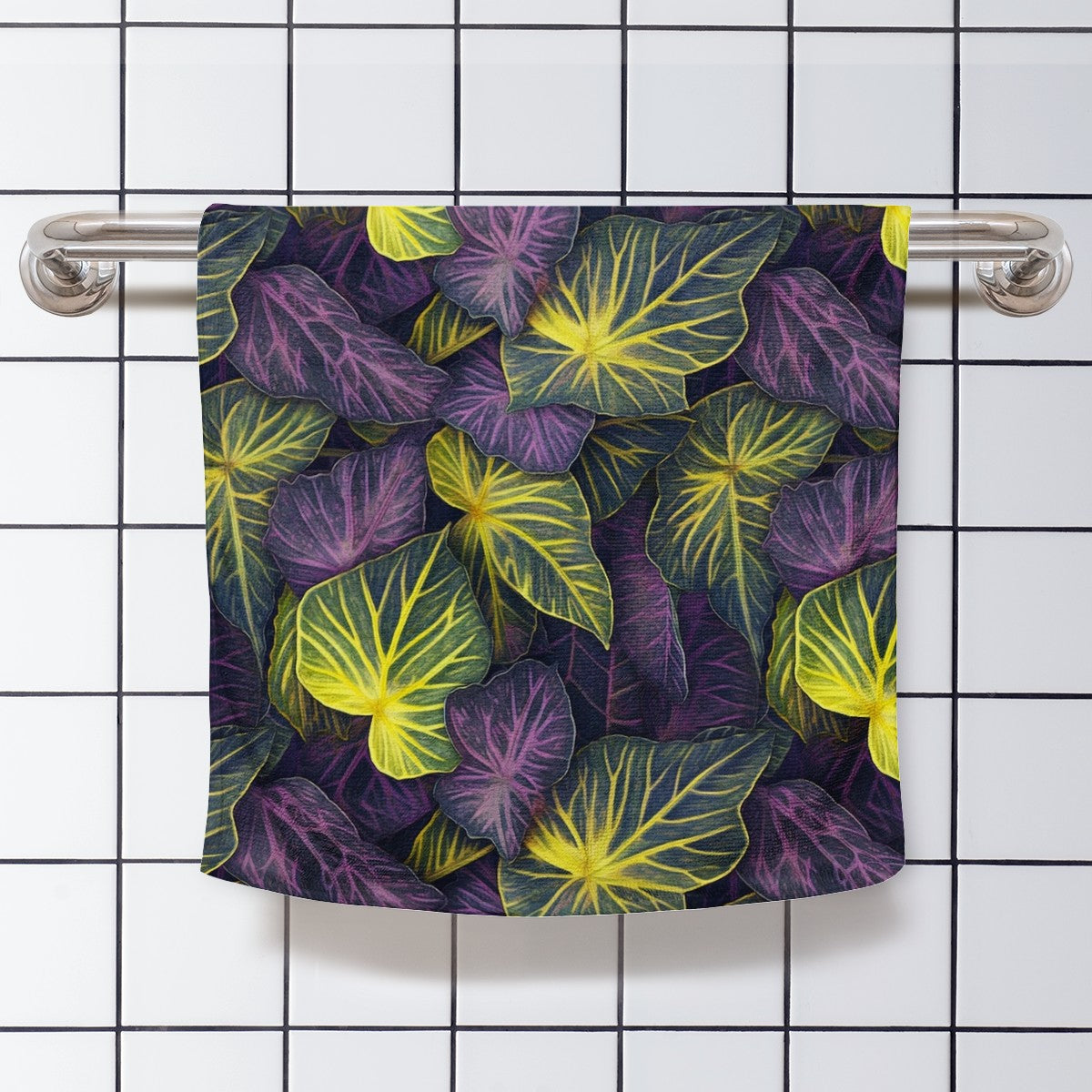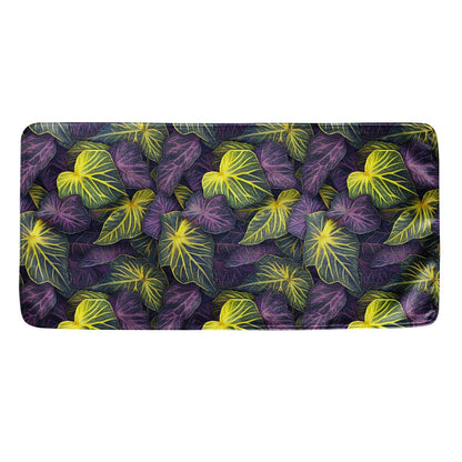 - Vivid Elegance: Adorned with the rich purples and sunny yellows of the Syngonium, this towel is perfectly sized to bring its vibrant charm to your home, beach days, or gym sessions.