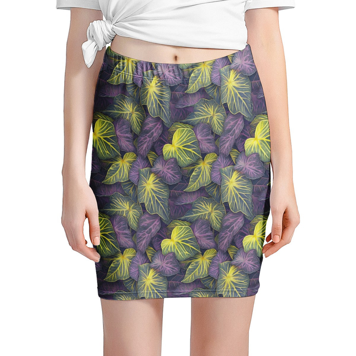 Luxtrini Iridescent Syngonium: Purple and Yellow Women’s Mini Skirt
