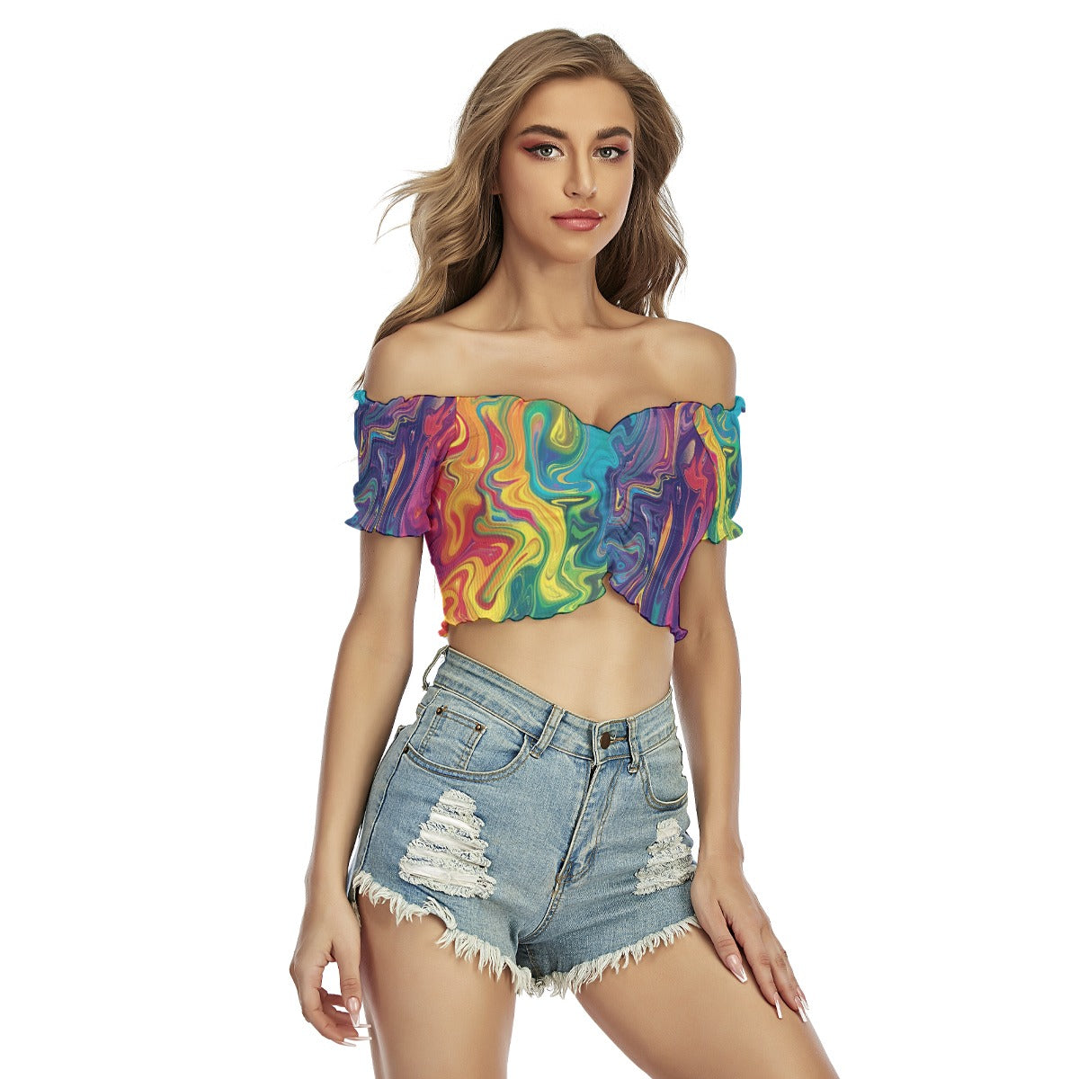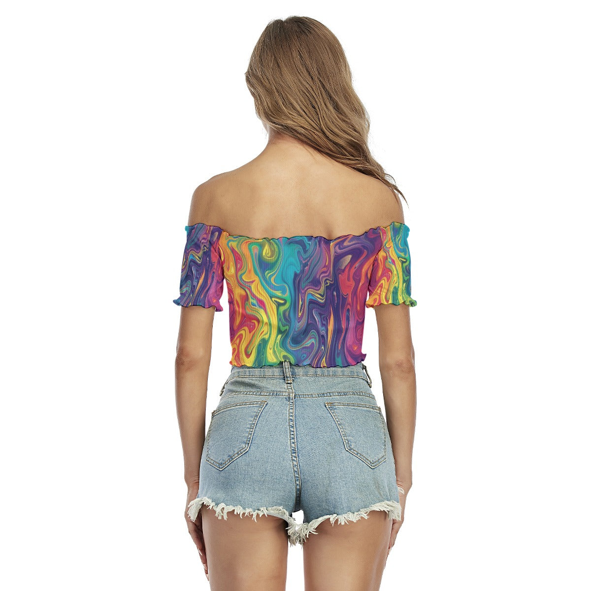 Indulge in the opulence of the Luxtrini Off-Shoulder Off-the-Navel Short Sleeve Women's Top. Crafted with impeccable taste and refined craftsmanship, this chic design effortlessly combines timeless beauty with modern sophistication. Available in a stunning array of colors, this top is perfect for any occasion, exuding pure sophistication and irresistible allure.