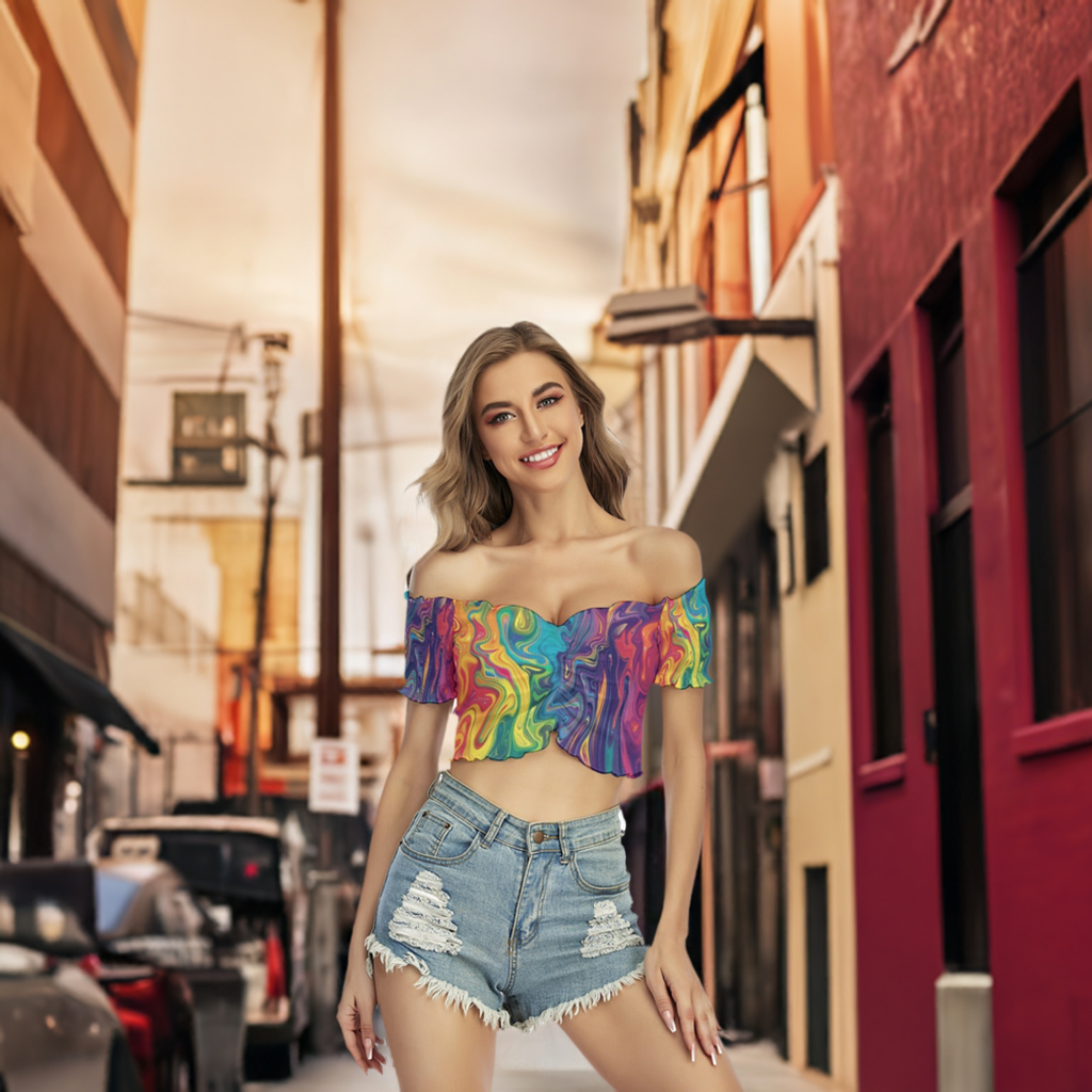 Luxtrini Rainbow Women's Crop Top - Chic, Elegant, Handmade, Sustainable, Unique