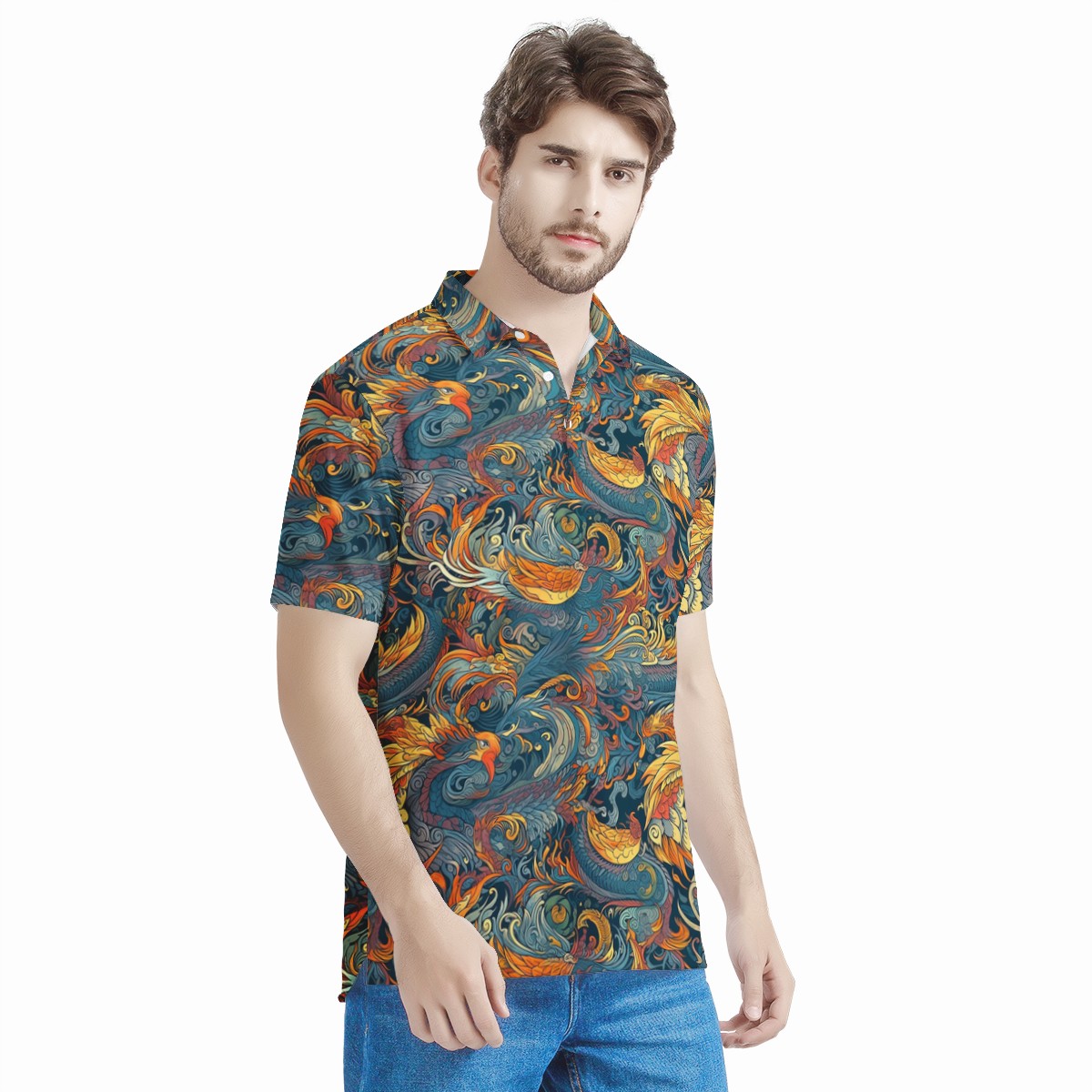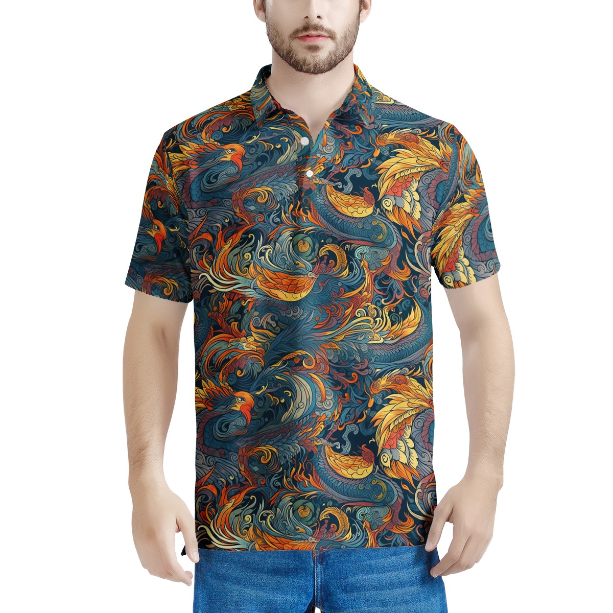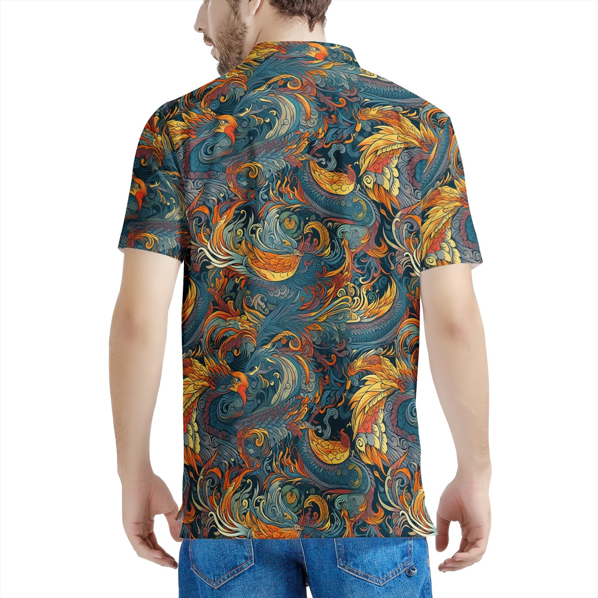 Majestic Dragon and a Graceful Phoenix Men's All Over Print Polo Shirt