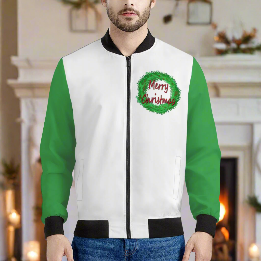 Men’s Christmas Bomber Jacket - Green Accent | Handmade, Cozy & Fade-Resistant Holiday Outerwear