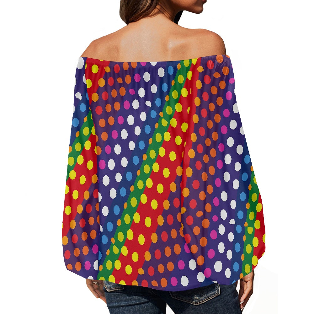 LGBTQ-Friendly Rainbow Polka Dot Off-Shouldered Chiffon Blouse by Luxtrini