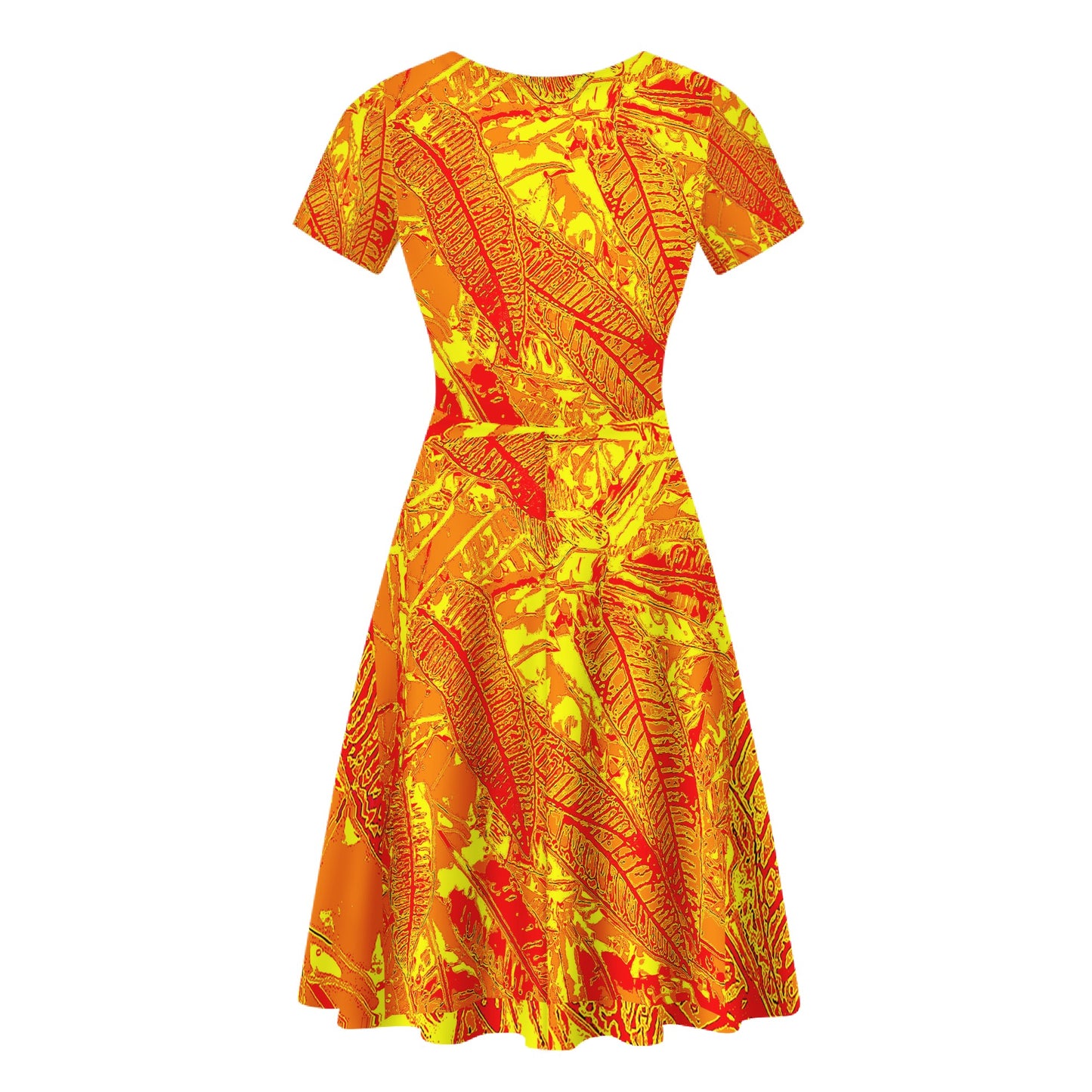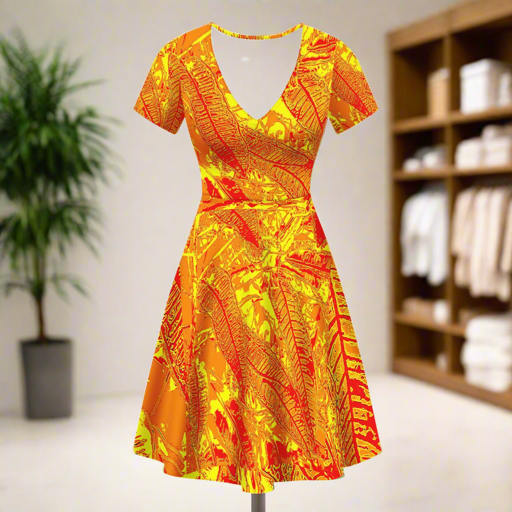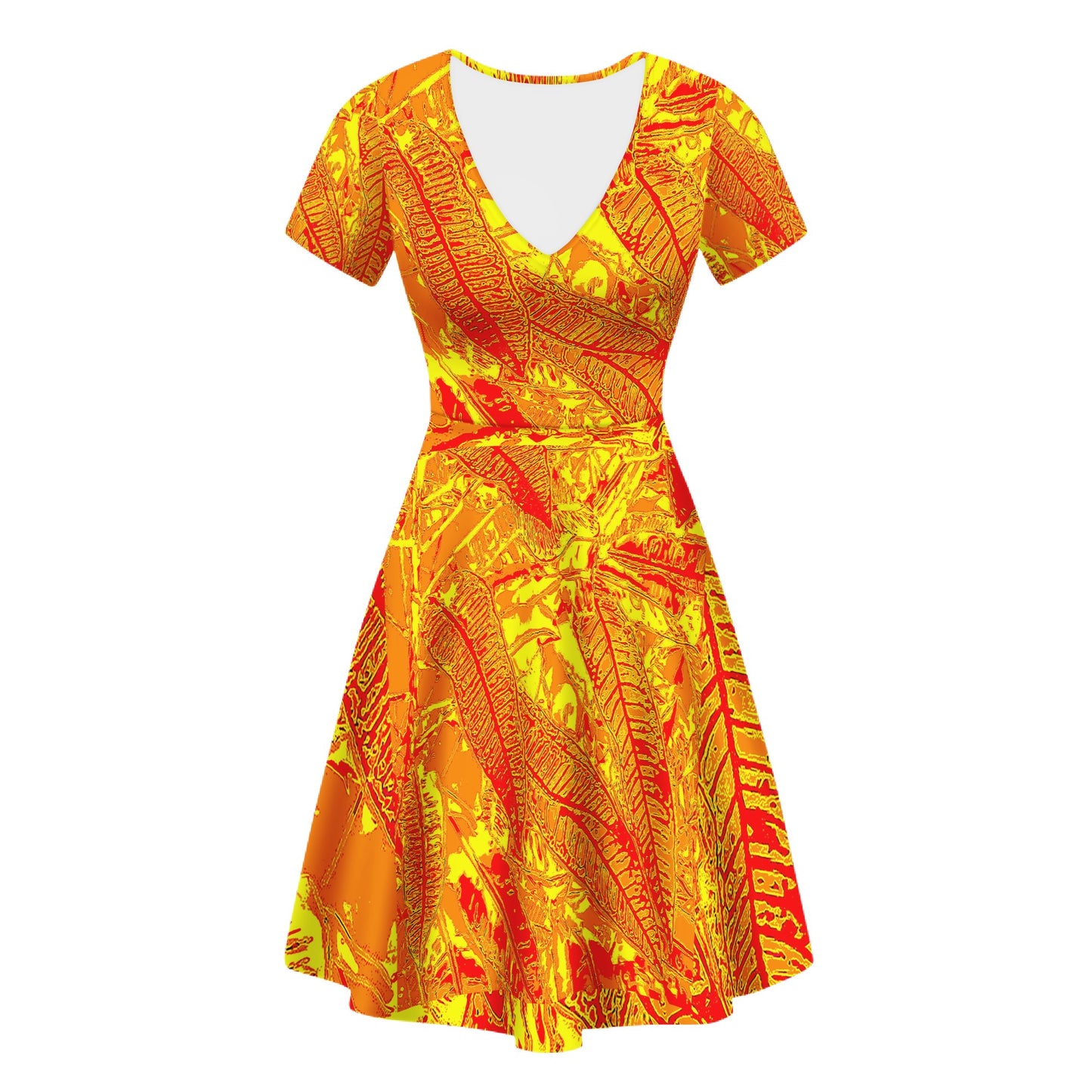 Orange Croton V-Neck Women Ruffle Bottom Dress