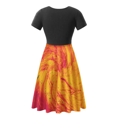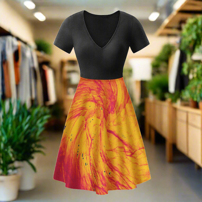 Pele's Fire Black V-Neck Women Ruffle Bottom Dress