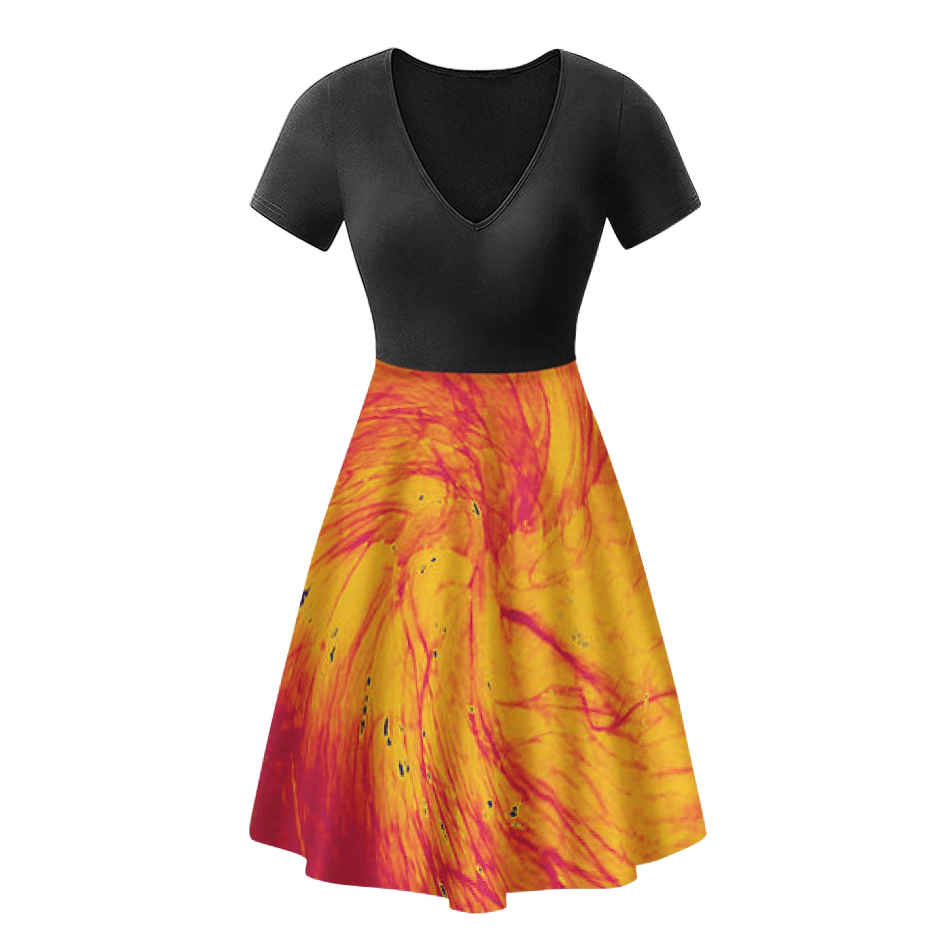 Luxtrini presents the Women's Ruffle Bottom Dress, a luxurious indulgence designed to elevate your style. Crafted with 95% polyester and 5% spandex, this elegant piece combines a V-neck sexy print top with a beautifully ruffled skirt. Experience the perfect blend of style and comfort, ideal for office suits, parties, casual outings, and holidays.