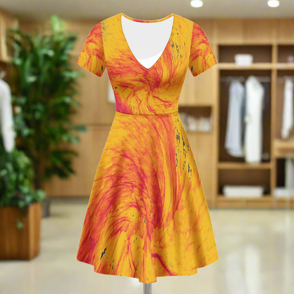 Pele's Fire Women's V-Neck Women Ruffle Bottom Dress - Embrace Your Inner Volcano Goddess