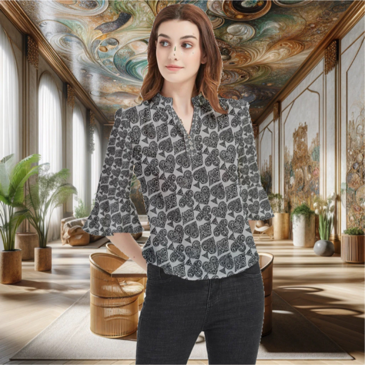 Playing Cards Gray | Loose Horn Sleeve Chiffon Blouse