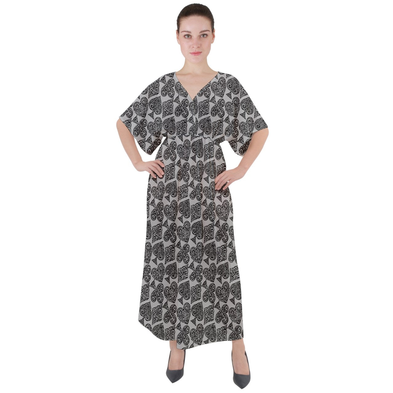 Playing Cards Gray | V-Neck Boho Style Maxi Dress