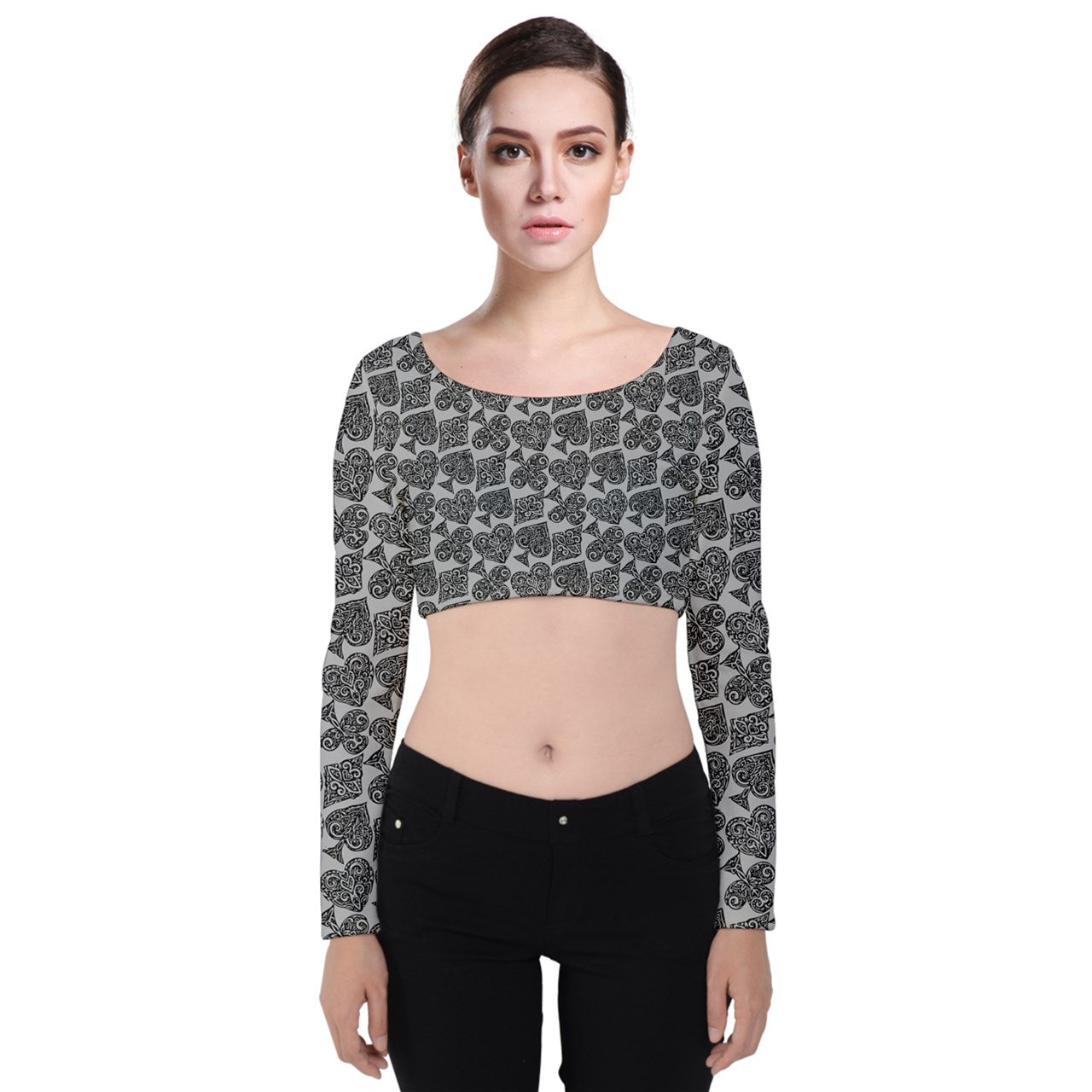 Playingcards-grey Velvet Long Sleeve Crop Top