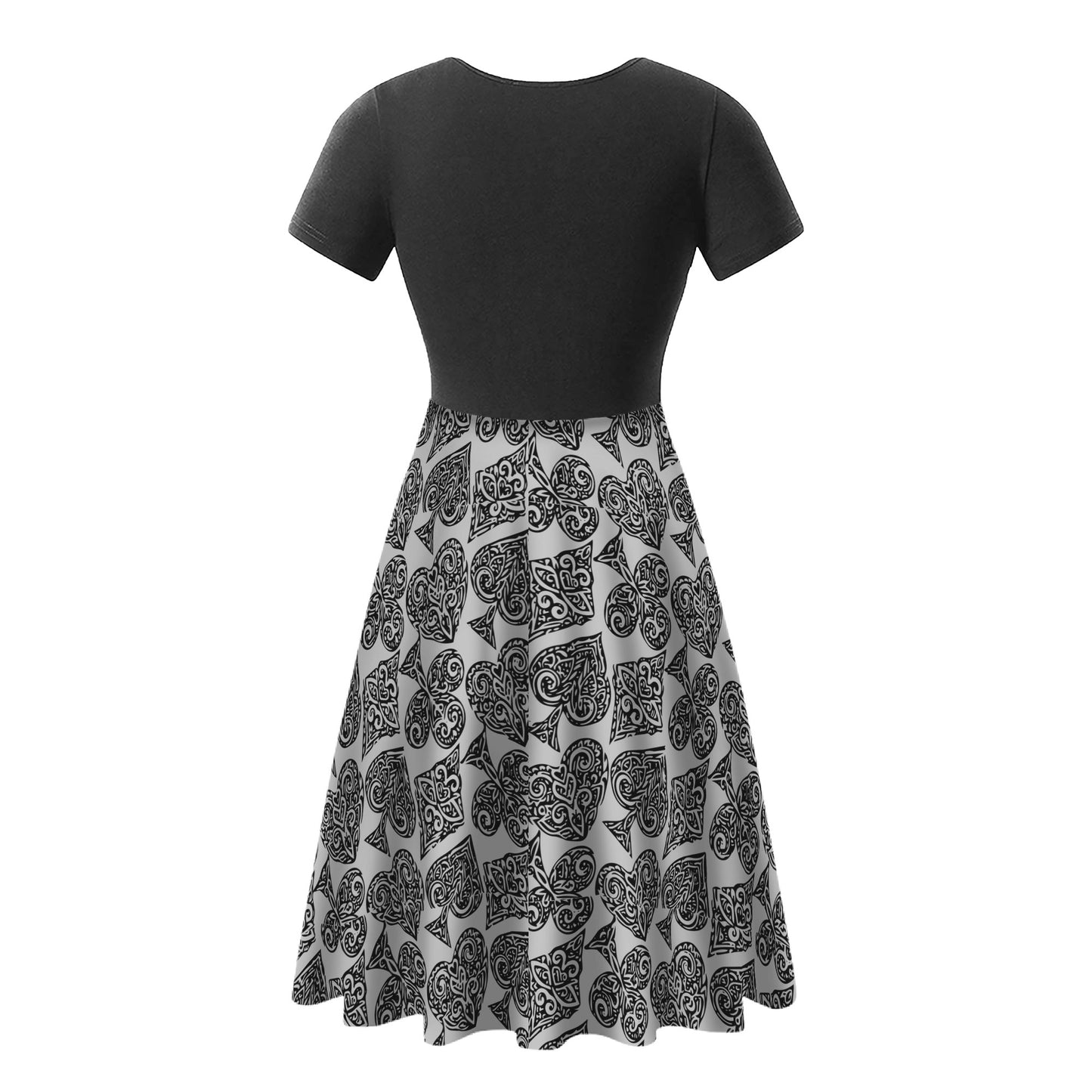 Luxtrini presents the Women's Ruffle Bottom Dress, a luxurious indulgence designed to elevate your style. Crafted with 95% polyester and 5% spandex, this elegant piece combines a V-neck sexy print top with a beautifully ruffled skirt. Experience the perfect blend of style and comfort, ideal for office suits, parties, casual outings, and holidays.
