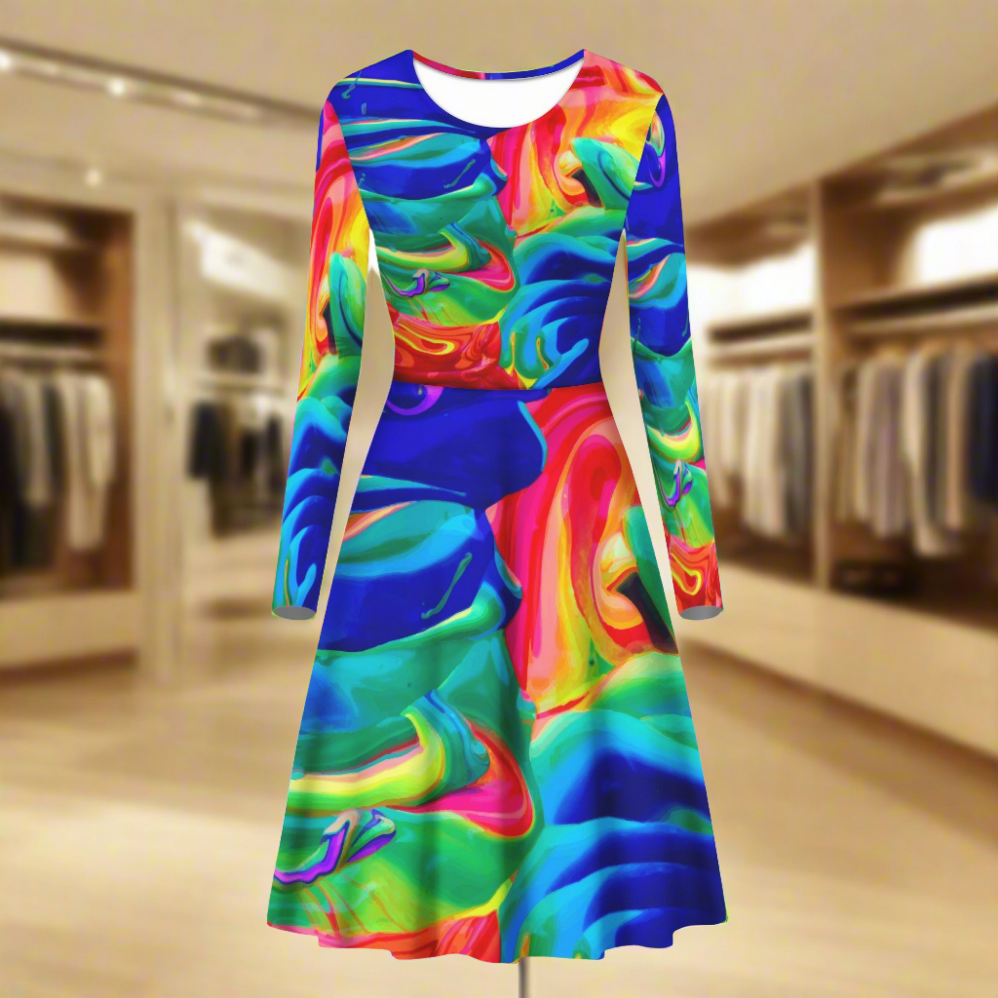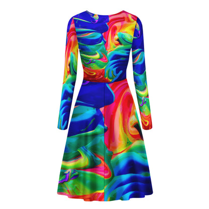 Rainbow Confusion Women Long Sleeve Ruffle Dress