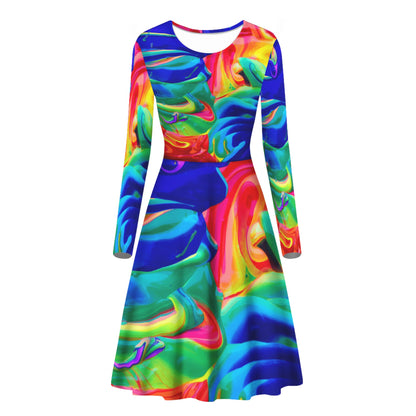 Rainbow Confusion Women Scoop Neck Long Sleeve Ruffle Dress